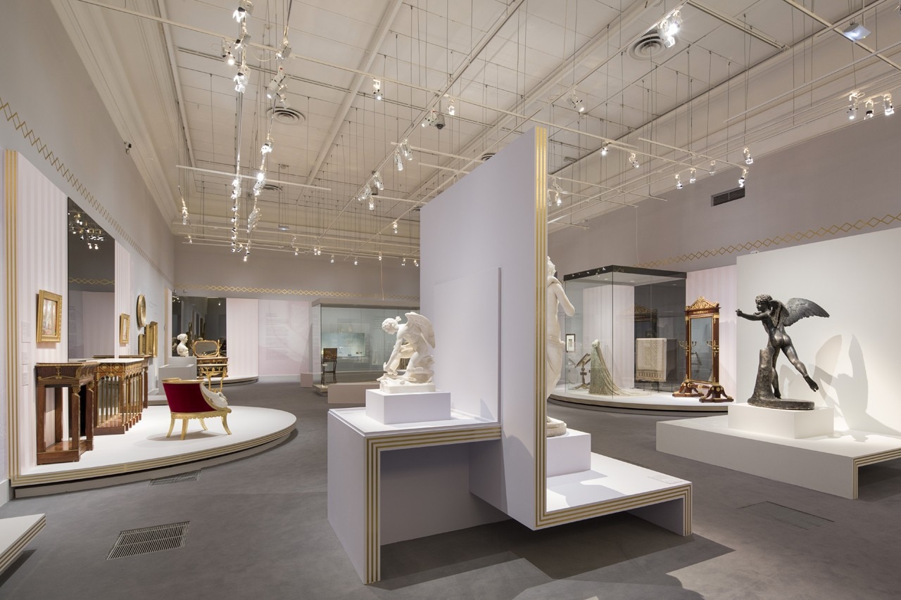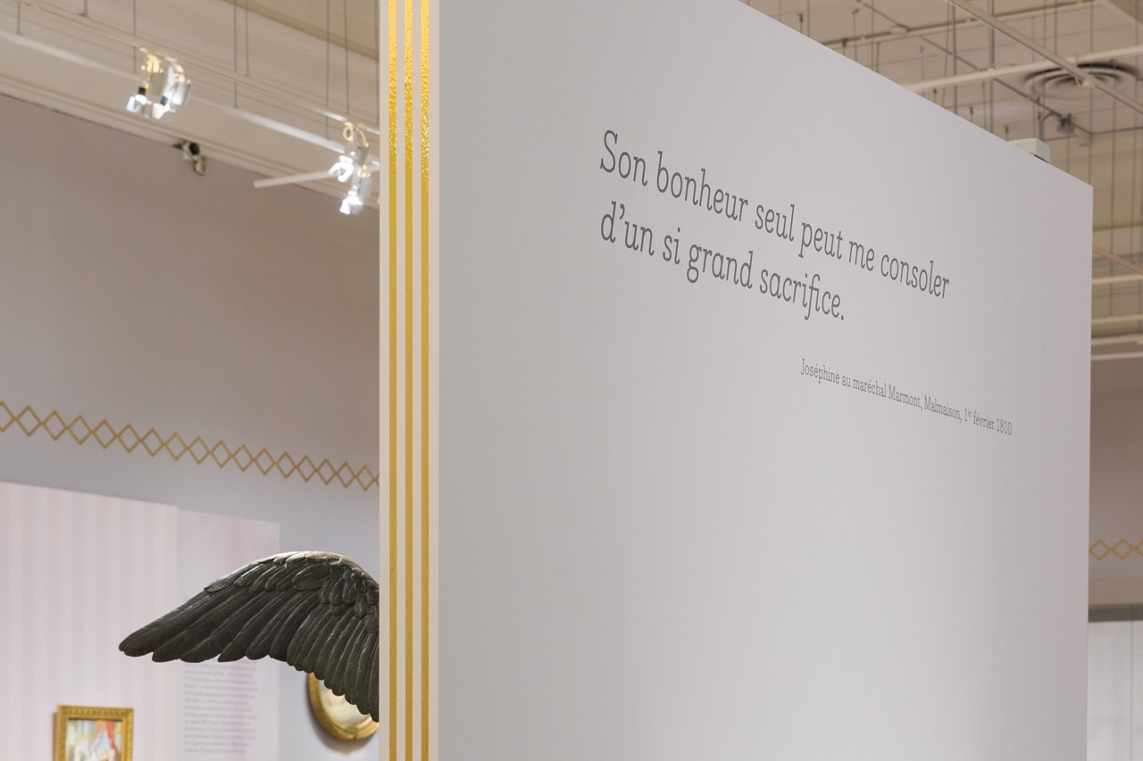 Just like Josephine, a timeless icon, the design of the exhibition includes references to the era; gilt and pastel colours given contemporary expression.