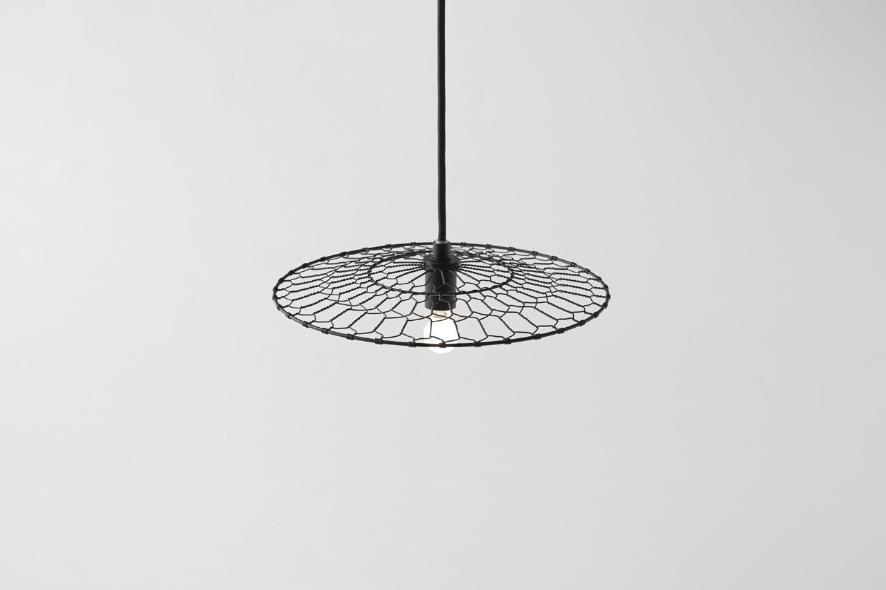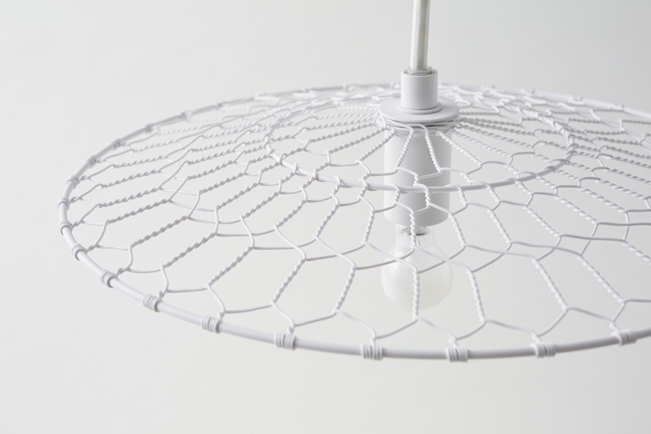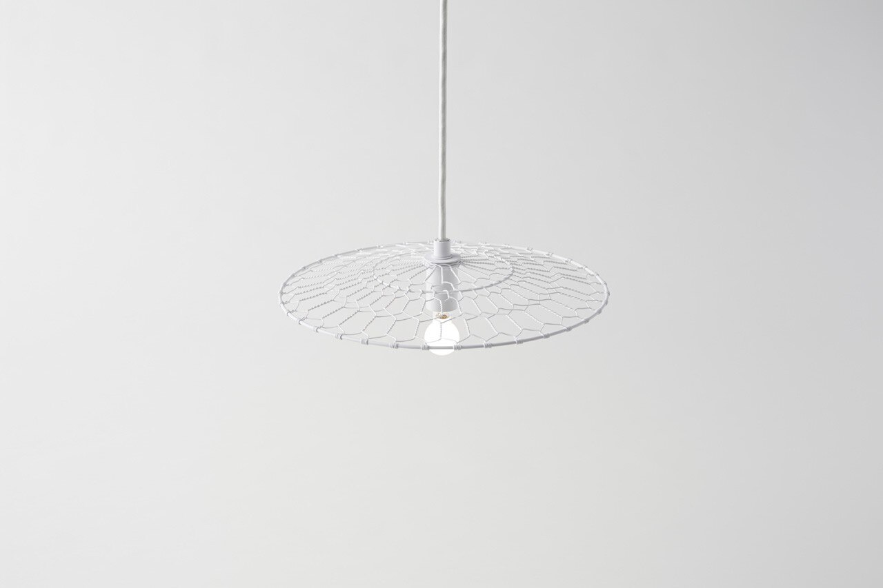 Nendo created this lighting fixture in collaboration with Kanaami-Tsuji, a Kyoto-based wire netting firm that preserves the craft’s traditions and develops it for contemporary living and future generations. The design allows the handcrafted shade’s beautiful woven pattern to reflect on the ceiling, an idea inspired by the Kyoto wire netting’s design, said to have originated with the beauty of the shadow of the wire netting used to lift blocks of tofu from boiling water in a famous Kyoto dish: yudofu.
