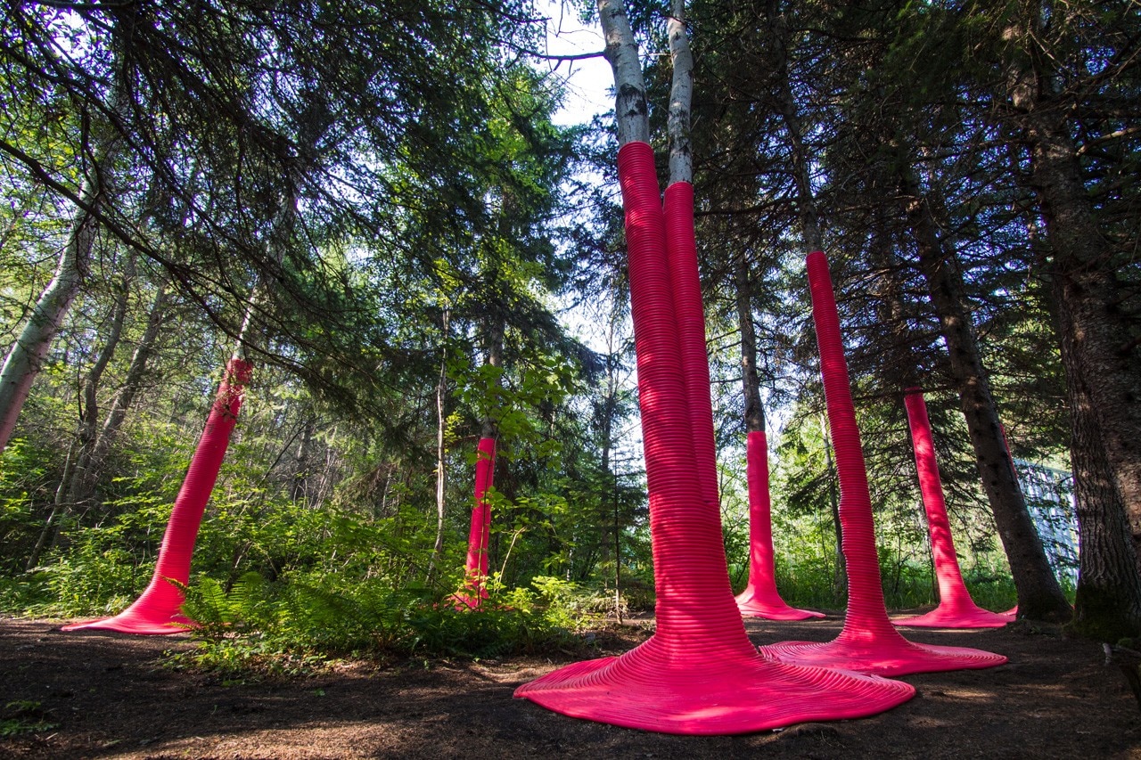 Aligned on a sunny esplanade or huddled in green rooms, the installations evoke the playful, the poetic and the delicacy and complexity of life. Through such installations as Courtesy of Nature, Sacré potager, Orange Secret, Pink Punch, Méristème, Cone Garden, Afterburn and Bal à la Villa, visitors are transported to new universes on an exceptional environment on the edge of St. Lawrence River.