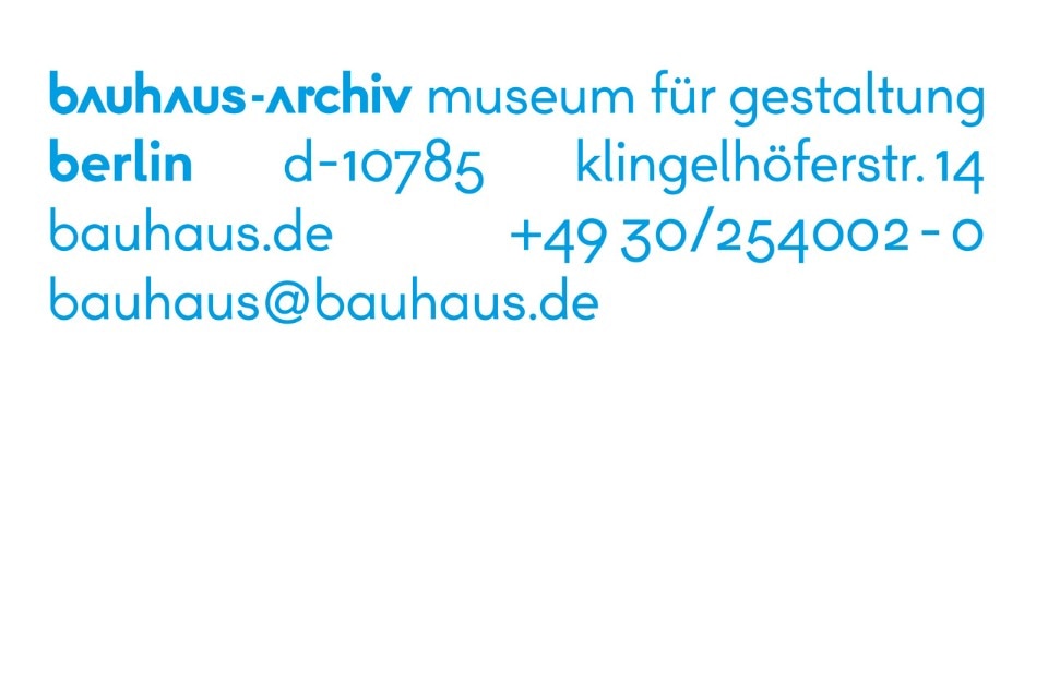 The new overall design developed by Sascha Lobe and his team at the Stuttgart agency L2M3, encompasses not only the stationery and other printed materials of the Bauhaus-Archiv, but also numerous other materials applying this design, such as exhibition catalogues and the semi-annual programme magazine. The design of the museum’s website was also fundamentally revised by L2M3. The new information and control system in the interior and exterior areas of the Bauhaus- Archiv will be installed in the coming months.