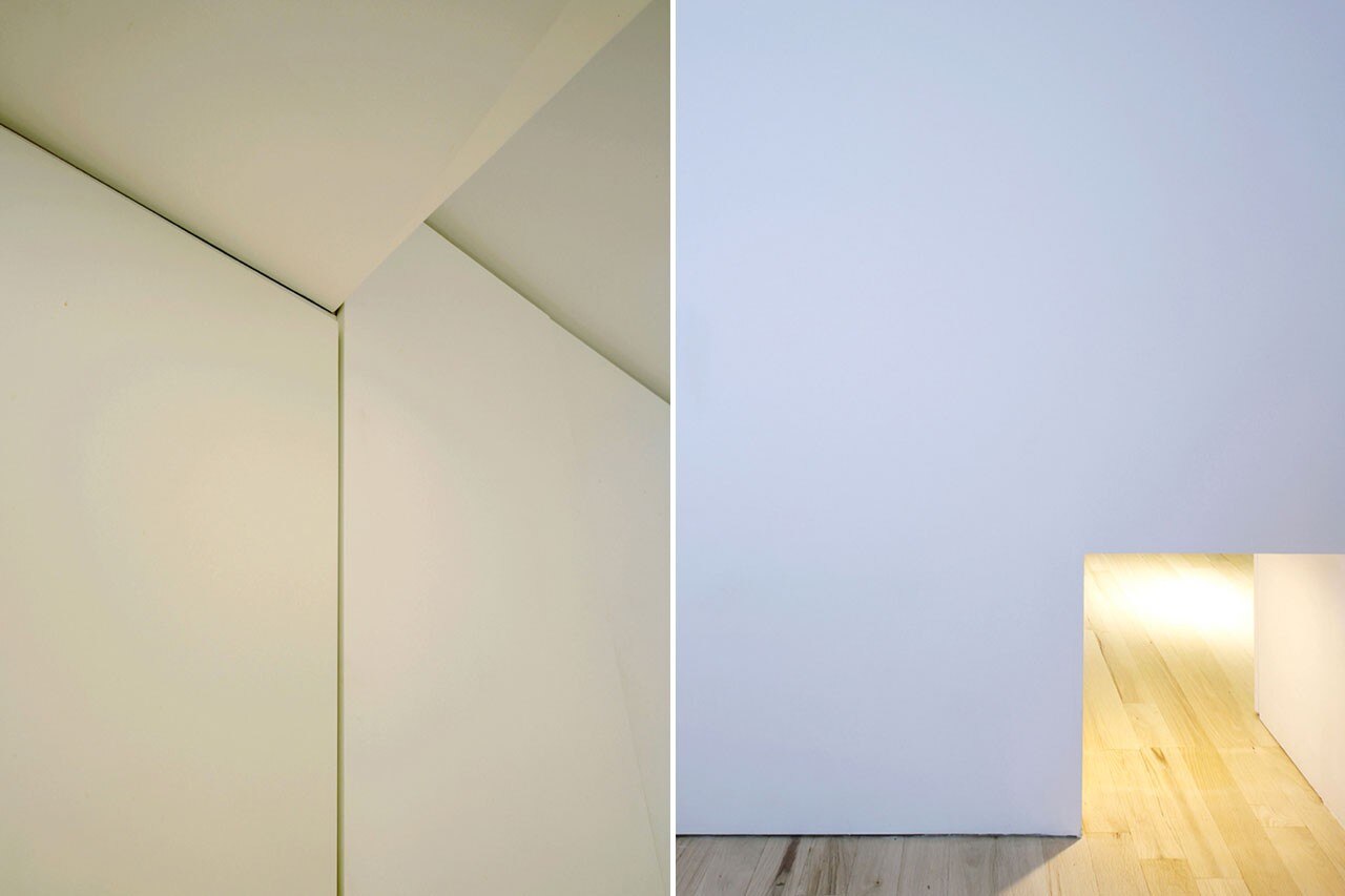 The shoe closet at the end of the hallway has a small hole at the bottom. The idea comes from the hall in the big wood colonnade of Todaiji-temple in Nara, Japan. There is the superstition that you get fortune and health when you go through the small tunnel.