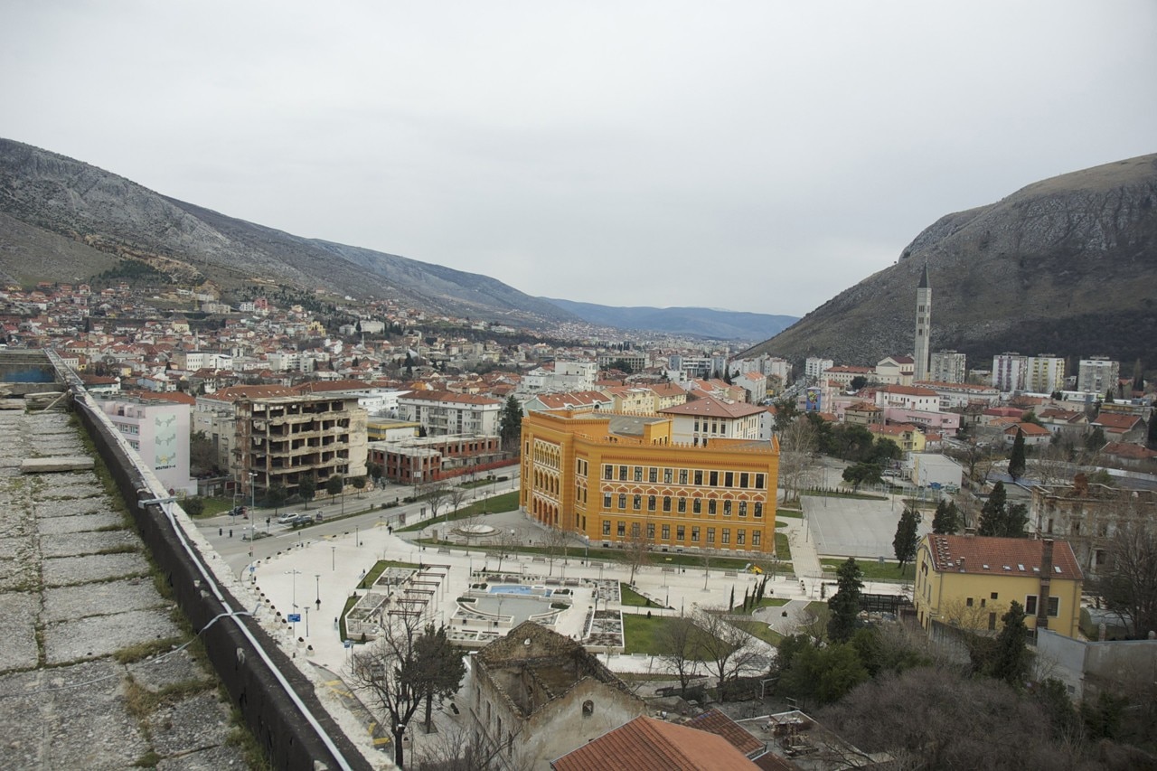 The second section of the exhibition, “Divided Cities”, is dedicated to the reality in cities in Europe which have become divided as a consequence of violent, ethno-national conflicts. Selected examples show how unsolved conflicts can be counteracted with non-violent means and thus contribute towards ending separation. The exhibition presents planning and architectural projects as part of various initiatives, as integral components of planning strategies in Belfast (Northern Ireland) and Nicosia (Cyprus), aimed at bridging the divide or creating shared spaces for multiple communities, as seen in Mostar (Bosnia-Hercegovina) and Mitrovica (Kosovo). Other strategies to overcome such divisions incorporate an examination of a shared history which can be preserved by creating projects for a shared future – a future development serving the needs of all citizens. Last but not least, activists, artists and architects are creating so-called ‘third spaces’, virtual and real spaces not perceived as related to the conflict.