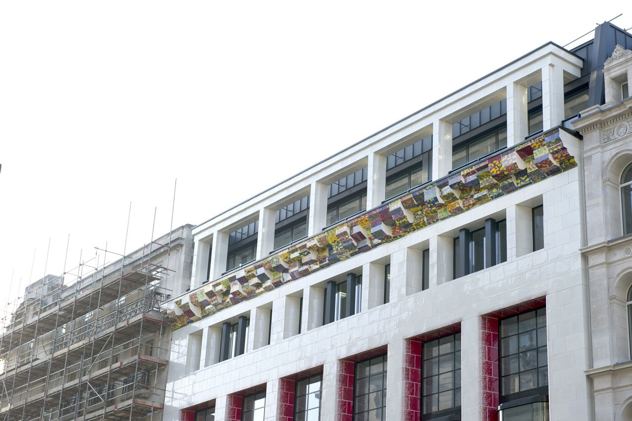The study/exhibition “3-2=1: Bridge, Bangle & Cornice” will focus on three different collaborative works in London: Millennium Bridge, the project that Deacon and Parry were invited to present for the Millennium Bridge competition 1996, their collaboration on the facade of Eric Parry’s Finsbury Square building (1999-2001), and their highly acclaimed collaboration on St James's Gateway, at the heart of Piccadilly Circus (2008-2013). This collaboration saw the integration of Deacon’s sculpture with the façade of the building. A twenty five metre cornice emblazoned with a cacophony of colours reflects the exuberance and activity of Piccadilly Circus.