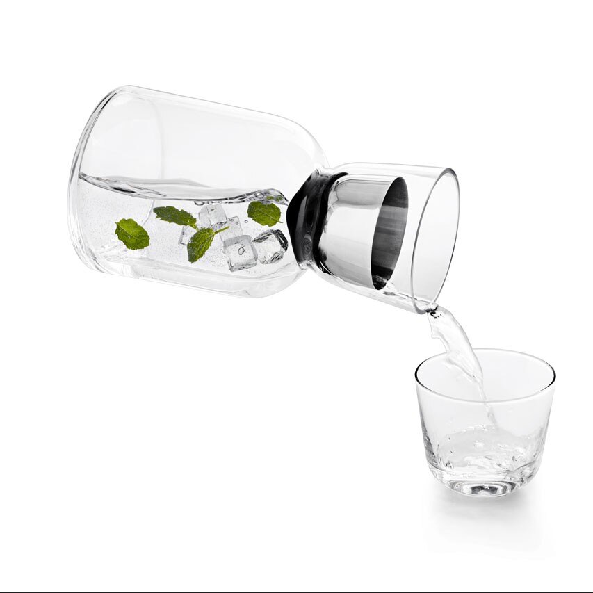The new carafe is called WW, which stands for ‘water’ and ‘wine’, as it can be used to serve a variety of beverages. When serving water or soft drinks from the WW carafe, the rubber seal and stainless steel breathing device prevent ice and garnishes, such as fruits and herbs, from splashing into the glasses.