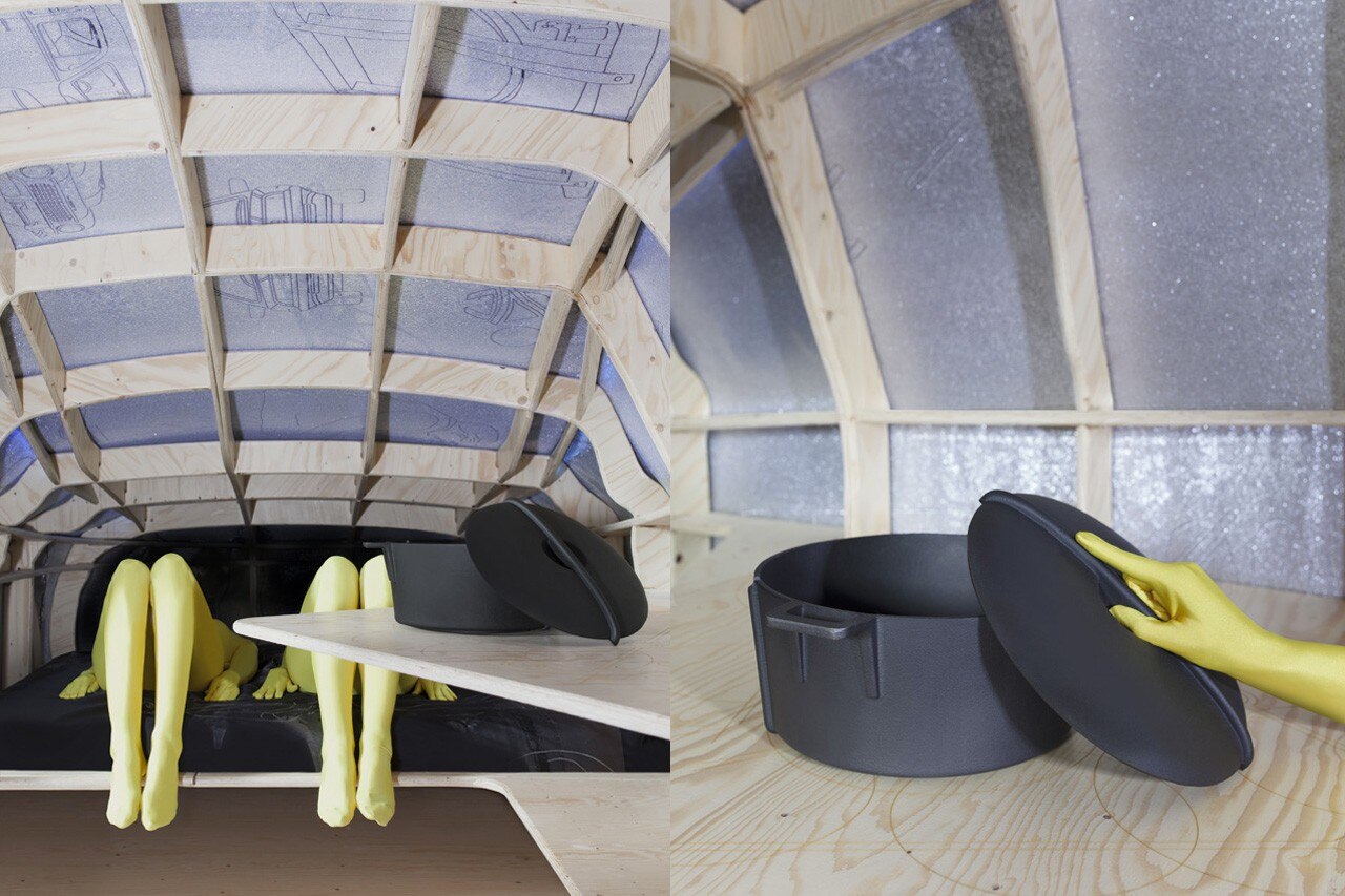 The best conversations take place at the table over a good meal. In this cast-iron pan are all the ingredients for a pleasant trip. The pan symbolises allemansrätten, the Swedish principle of sharing. The material, form and iron mark on the bottom – Volvo’s logo – refer to the origins of the car.