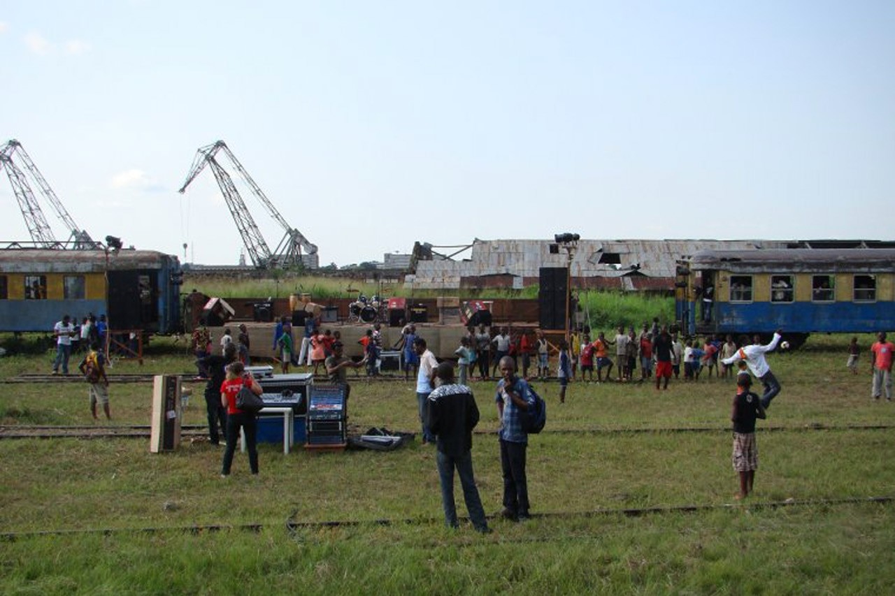 Studios Kabako also practices urban acupuncture. Though the organization maintains offices and recording and rehearsal studios in the city center, it has brought its work to the rural fringes and vacant areas of Kisangani by organizing a series of mobile performances.