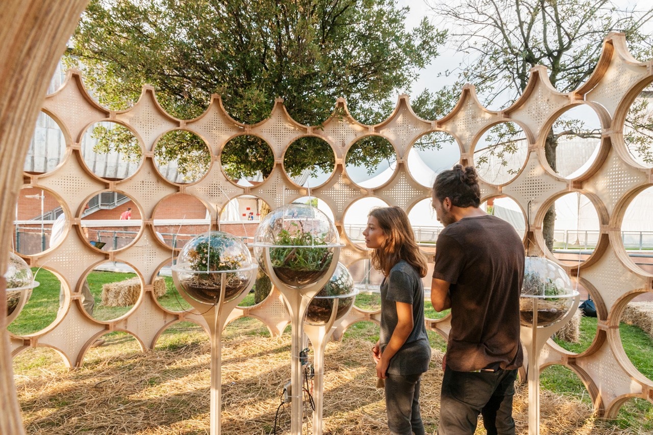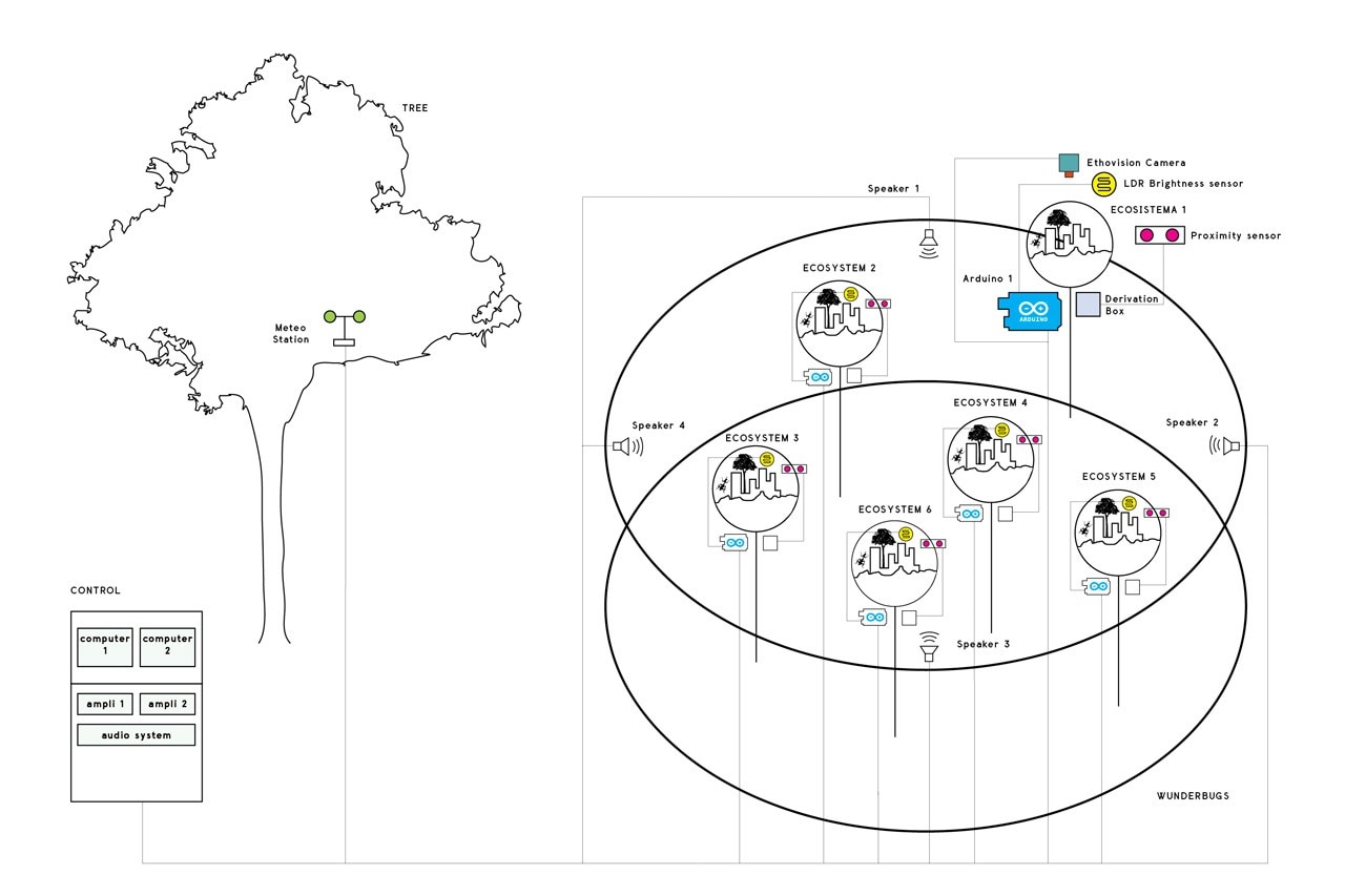 Wunderbugs’ undisputed protagonist is the world of insects. Within Wunderbugs six spherical interactive ecosystems are equipped with Arduino and sensors for motion, humidity, temperature and intensity of sunlight. This data, combined with the information collected by a network of ultrasonic sensors able to detect the position of the visitors, is used to modulate in real time the Wunderbugs musical composition implementing a complete integration between architecture and environment.