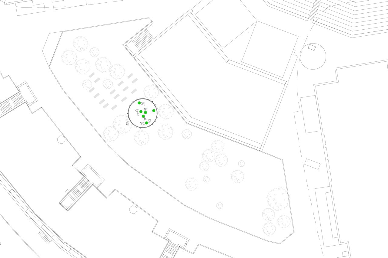 By playing with technology, the architecture and pavilion’s geometry create an outdoor room equipped with an audio installation in which the music makes through combining nature and human an inseparable (and abstract) relationship with the world’s harmony.