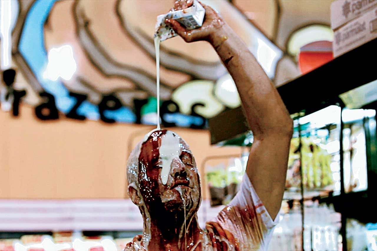 Although the artists utilize agricultural raw materials like, for example, Ernesto Neto’s beans (Variation on Color Seed Space Time Love, 2009) or Jannis Kounellis’ sunflower seeds (Untitled, 1968), Food is not an exhibition of gastronomy or cuisine. Of course, we observe the Indian photographer pointing his lens on the movement of the hands that carry, give and serve foods. In his photographs we see the hands of Chennai women with rice, the hands of a water seller in Delhi, or the hand that tips the aluminium kettle to pour tea into a cup at the Mumbai markets.