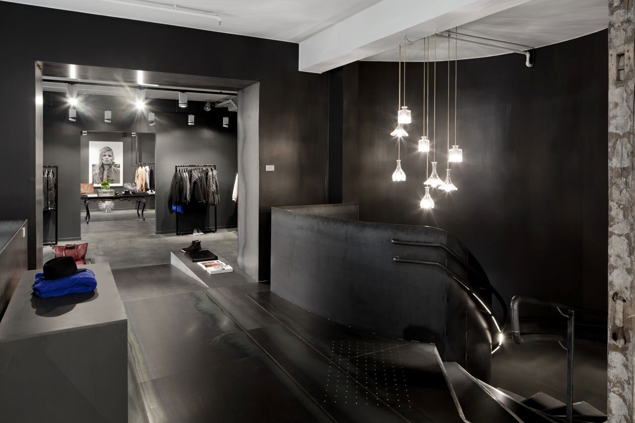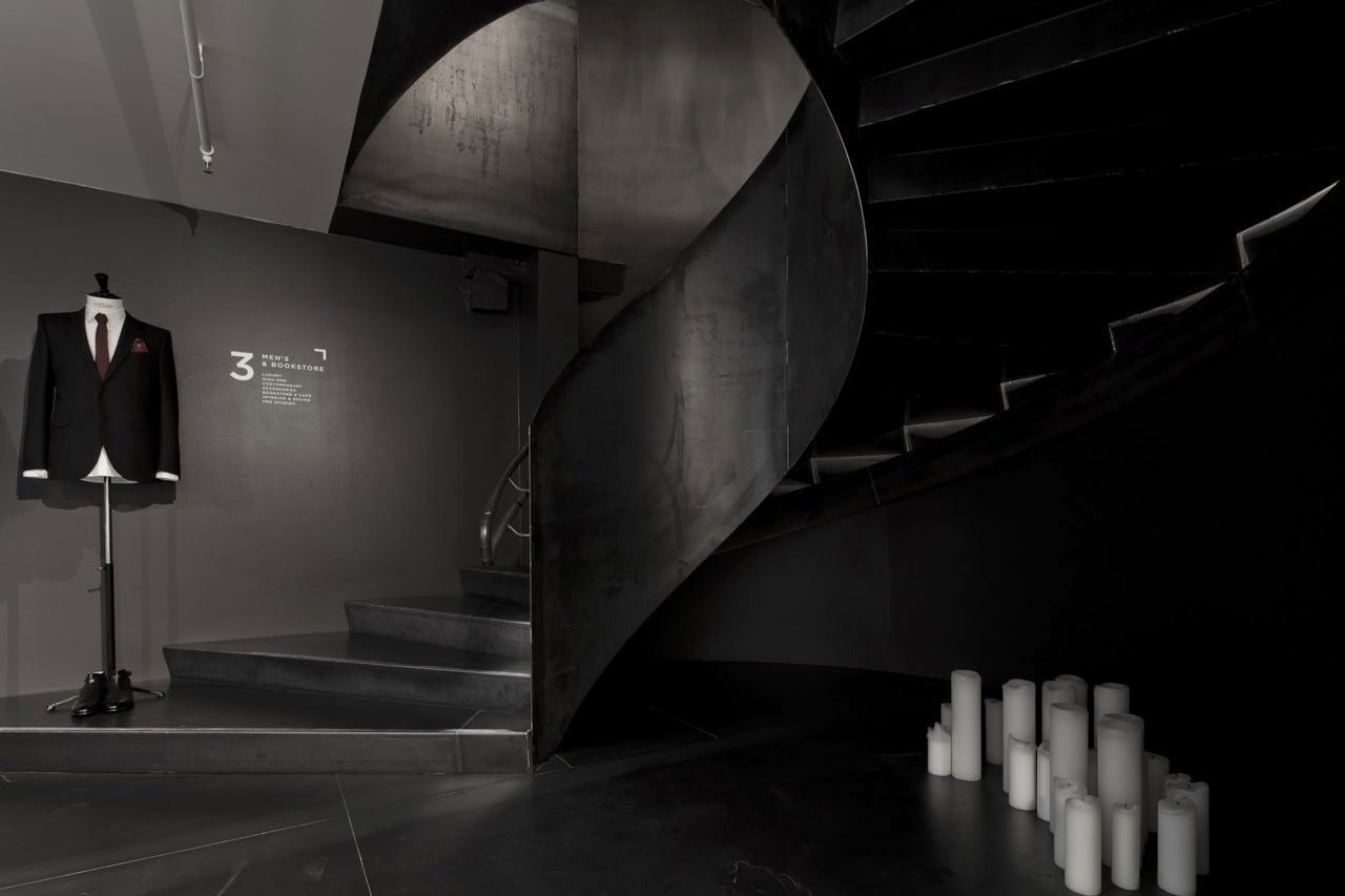 The store’s design and interior created by YME Studios in collaboration with Snøhetta features an art gallery, a bookstore, a café, and a future roof garden. Art exhibitions are frequently found alongside the merchandise, as are signings, launches, in-store appearances, and fashionable happenings.
