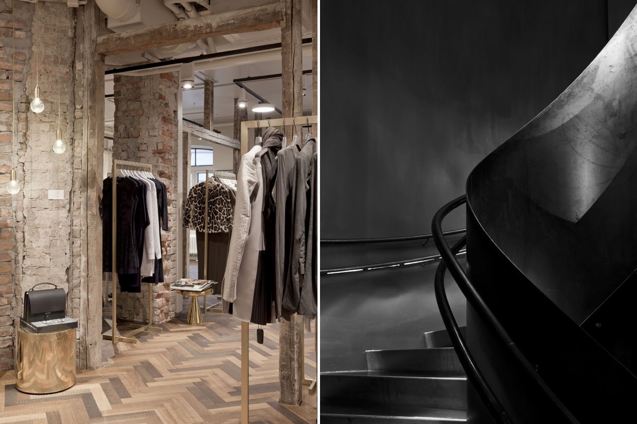 Between the cold first and the warm third floor is the second floor, where the flooring is woven solid wood, and the windows out to Karl Johans gate are reopened to bring daylight into the store. With a wish to carry on qualities from the 1800s building, a large part of the original studwork has been kept, temporary walls have been removed, and distinct qualities of the building have been highlighted.