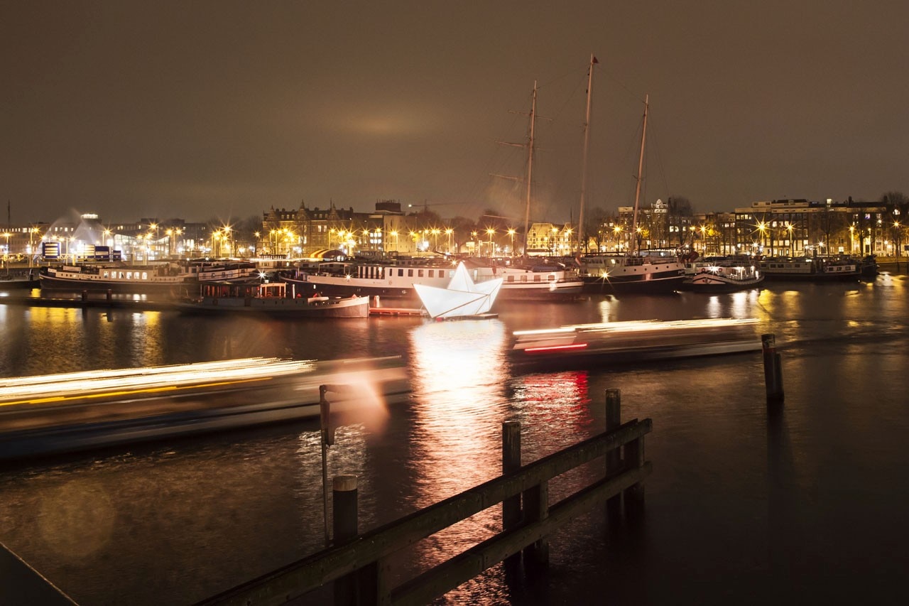 The Austrian lighting solutions partner Zumtobel is acting as a key partner for the realization of central artworks at the Amsterdam Light Festival by providing advice and lighting solutions developed specifically for the event. As well as sponsoring the festival, Zumtobel also helped to realize two major installations: Intrepid, The Paper Boat by Katja Galyuk/City+Light and Re(bi)cycle Dome by Vasili Popov.