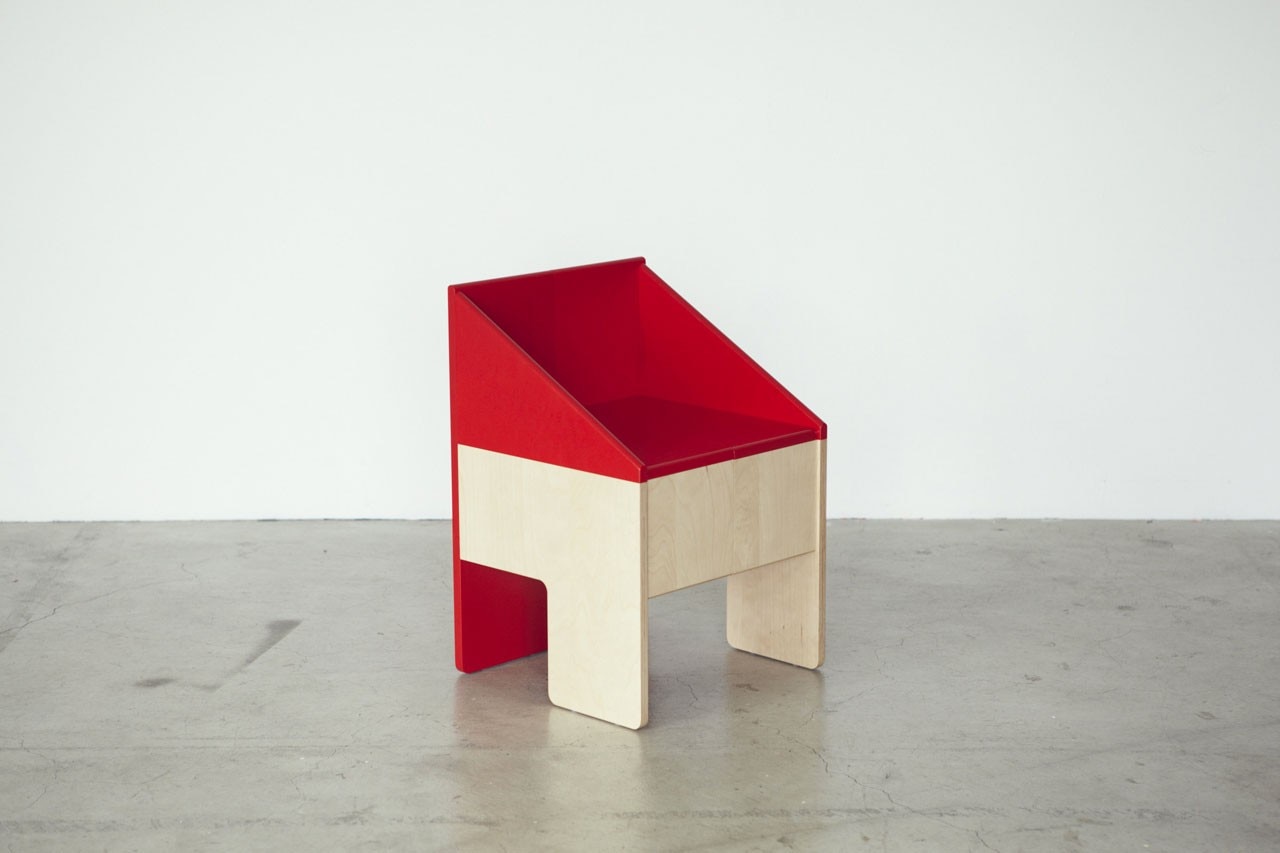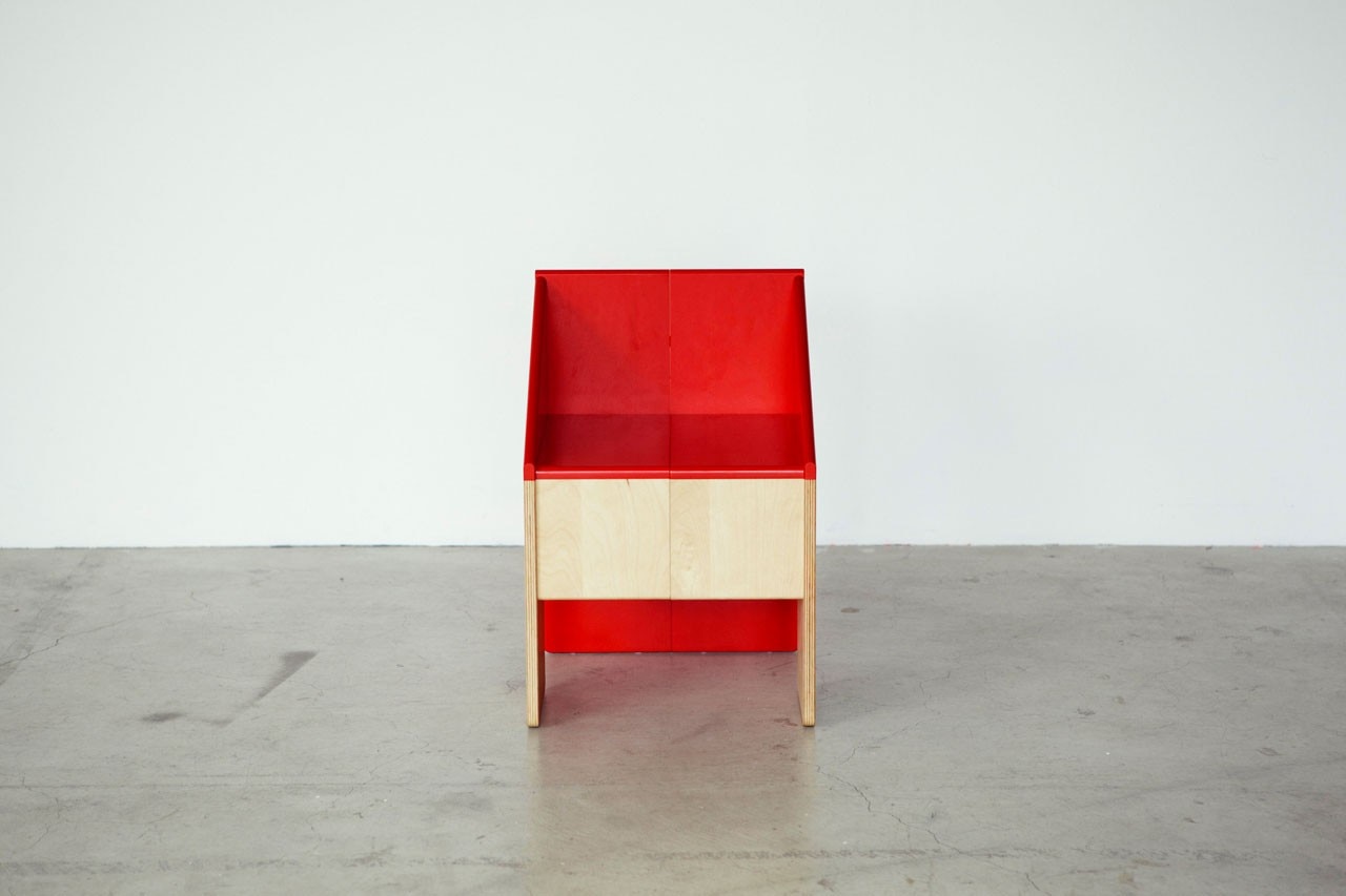 When split apart down the middle, the chair reveals the shape of a house with a red gable roof. Kids can play dollhouse with their toys and stow them away with other small objects by shutting the chair close once playtime is over. These three distinct functions make the dollhouse chair a very original and versatile piece of furniture.