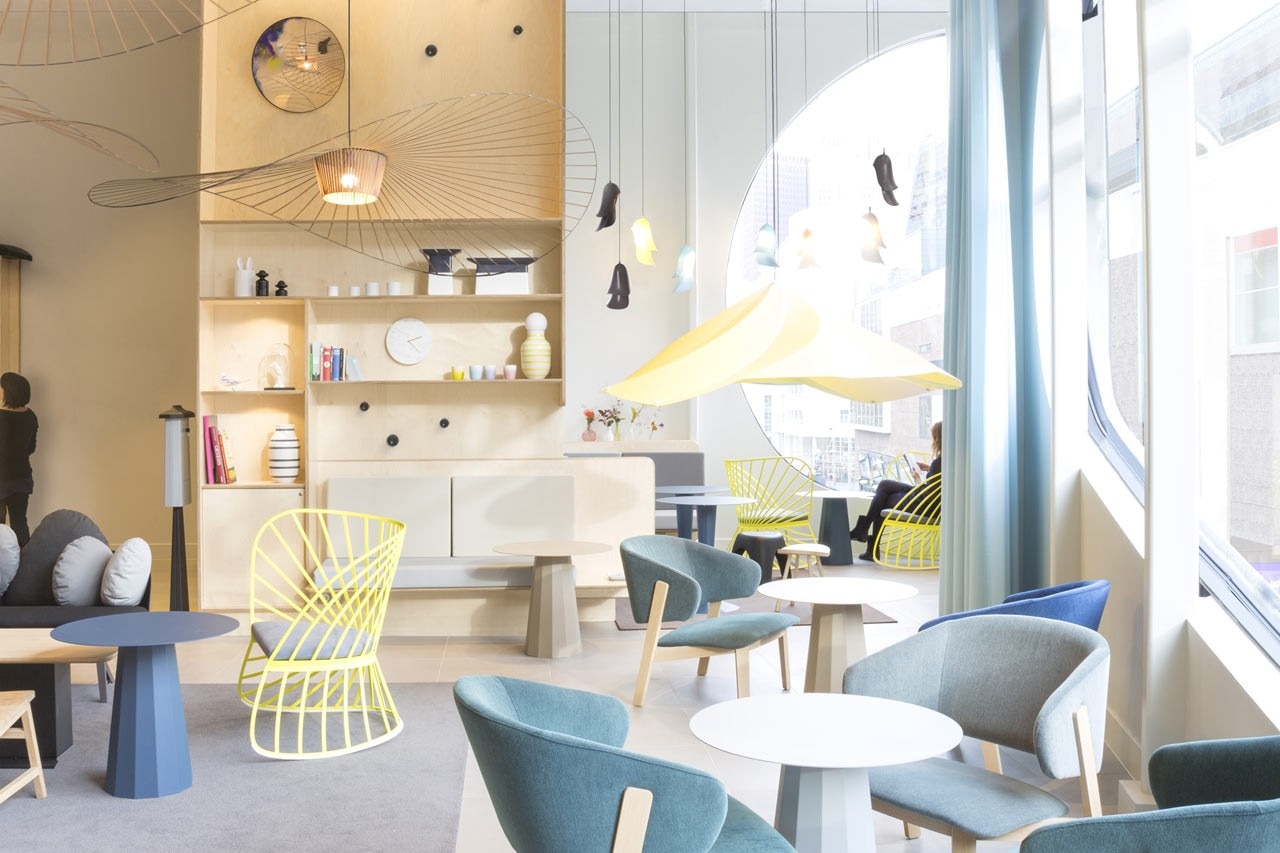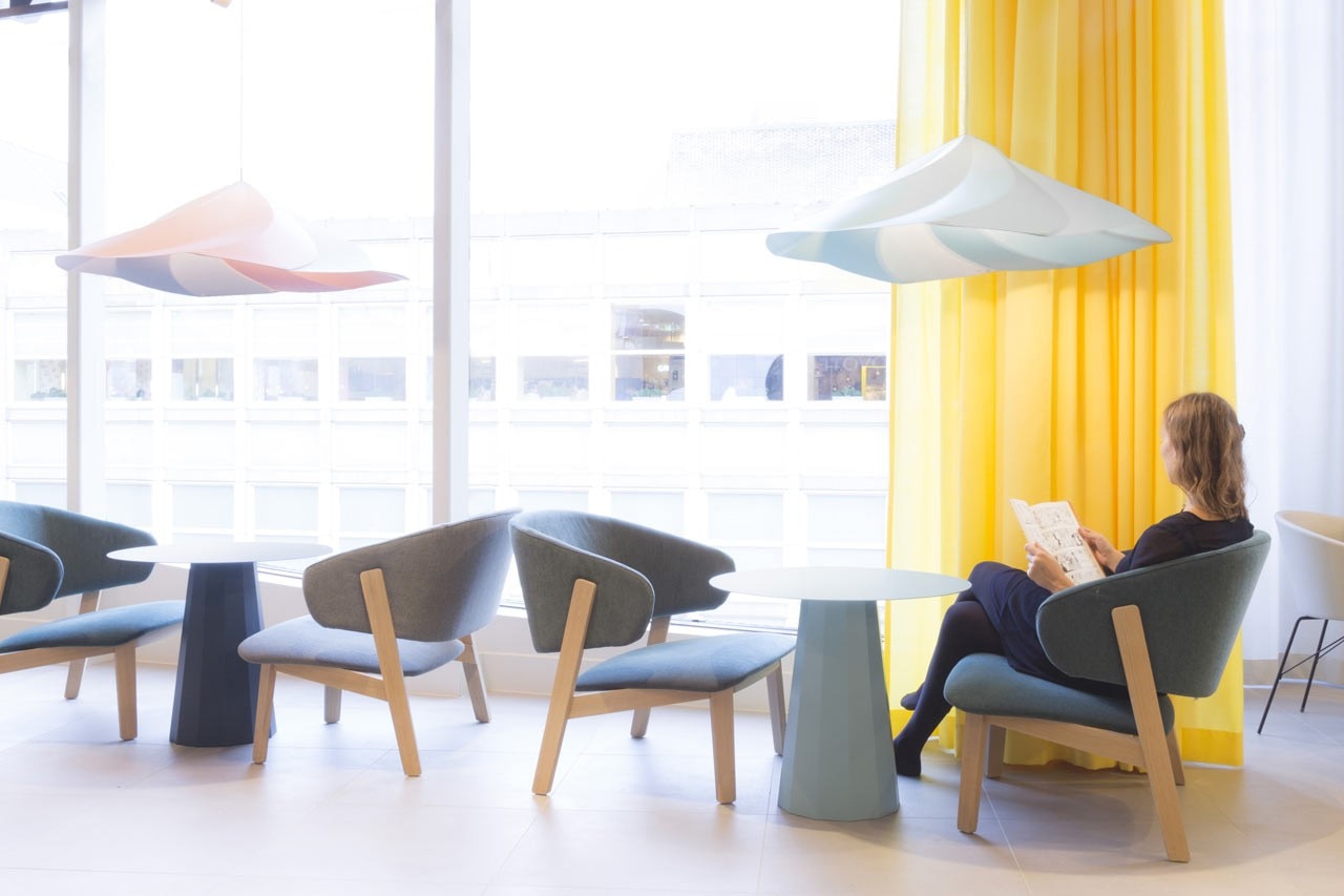 In her project for the Accor Suite Novotel at The Hague Constance Guisset chooses simplicity and creates a joyful and peaceful atmosphere by cutting corners and softening the lines.