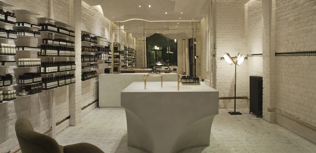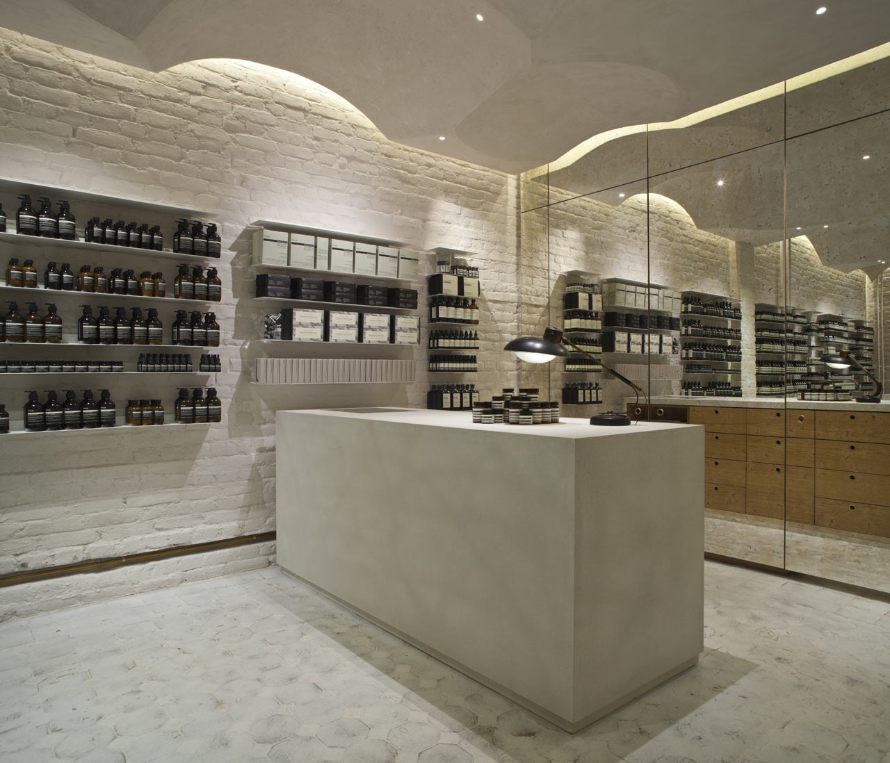 Inspired by the sensory experience of the Aesop consultation process, the architectural exploration began by revealing materials and surfaces that have been hidden and covered within the space, some dating back to the 1800s – a process of archeology. Once revealed in the renovation process, the cosmetic of the new materiality was added to the interior’s existing surfaces, contemporizing the old.