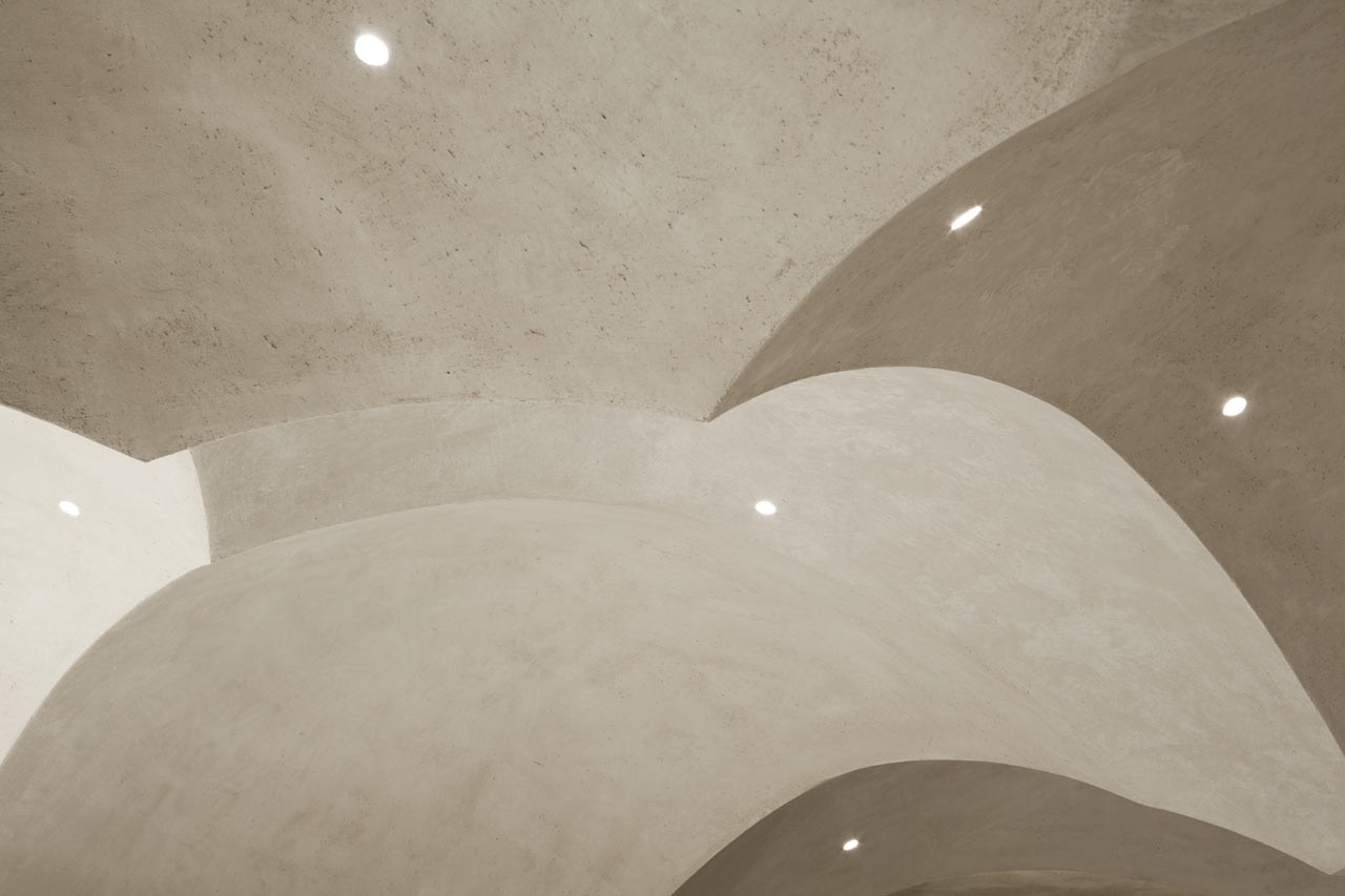 Here, a traditional form reminiscent of Orthodox churches and monasteries has been contemporized in ten imposing, intersecting domes, finished with matte gypsum plaster to accentuate their varying proportions. This dynamic surface not only creates a sense of depth and wonder, it also allows for playful experimentation with lighting and acoustics.