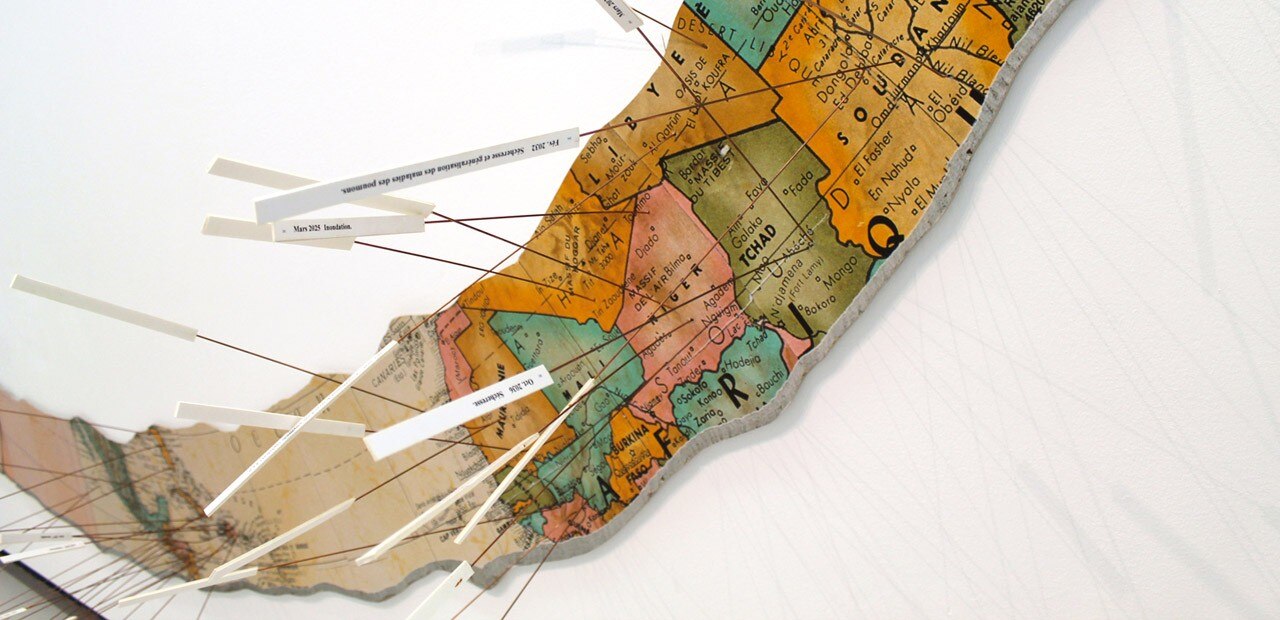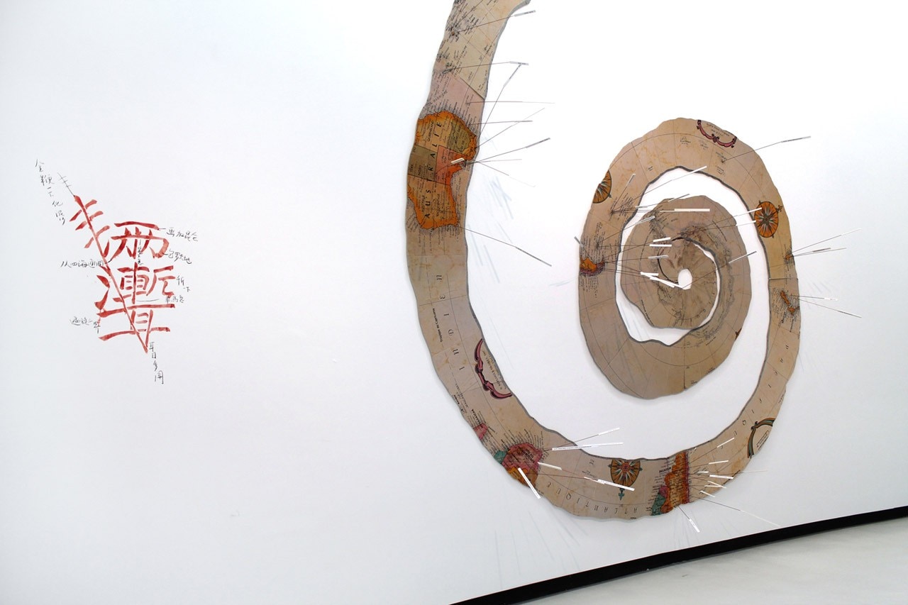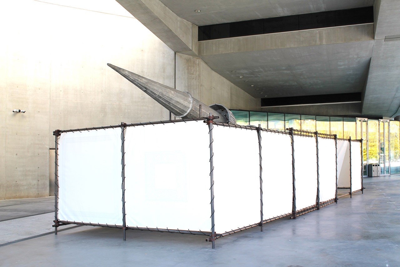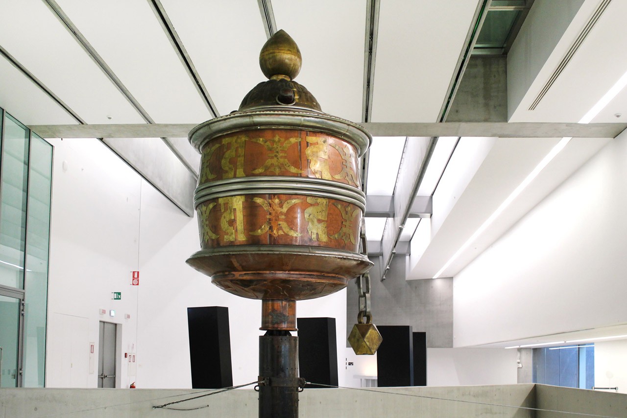 The exhibition route comprises a series of carefully selected works that analyze the confrontation and the conflicts in the world between the various faith systems, in the attempt to draw a different “map of global civilization.” These include, among others, such works as Construction Site (2007) a minaret, that is, the tower of the Mosque from which the muezzin (muadhdhin) five times a day calls to prayer the devotees to Allah, shown in the area of a building site, in an indefinite state between construction and dismantlement. Hei Hei Sina Sina (2000 – 2006), a gigantic prayer mill made of copper, like the one used by the Tibetan Buddhists, which is rotated to produce a pacifying sound, but that is actually made up of a wooden pole that is the image of a Chinese weapon called mao, while the lid represents a shield.