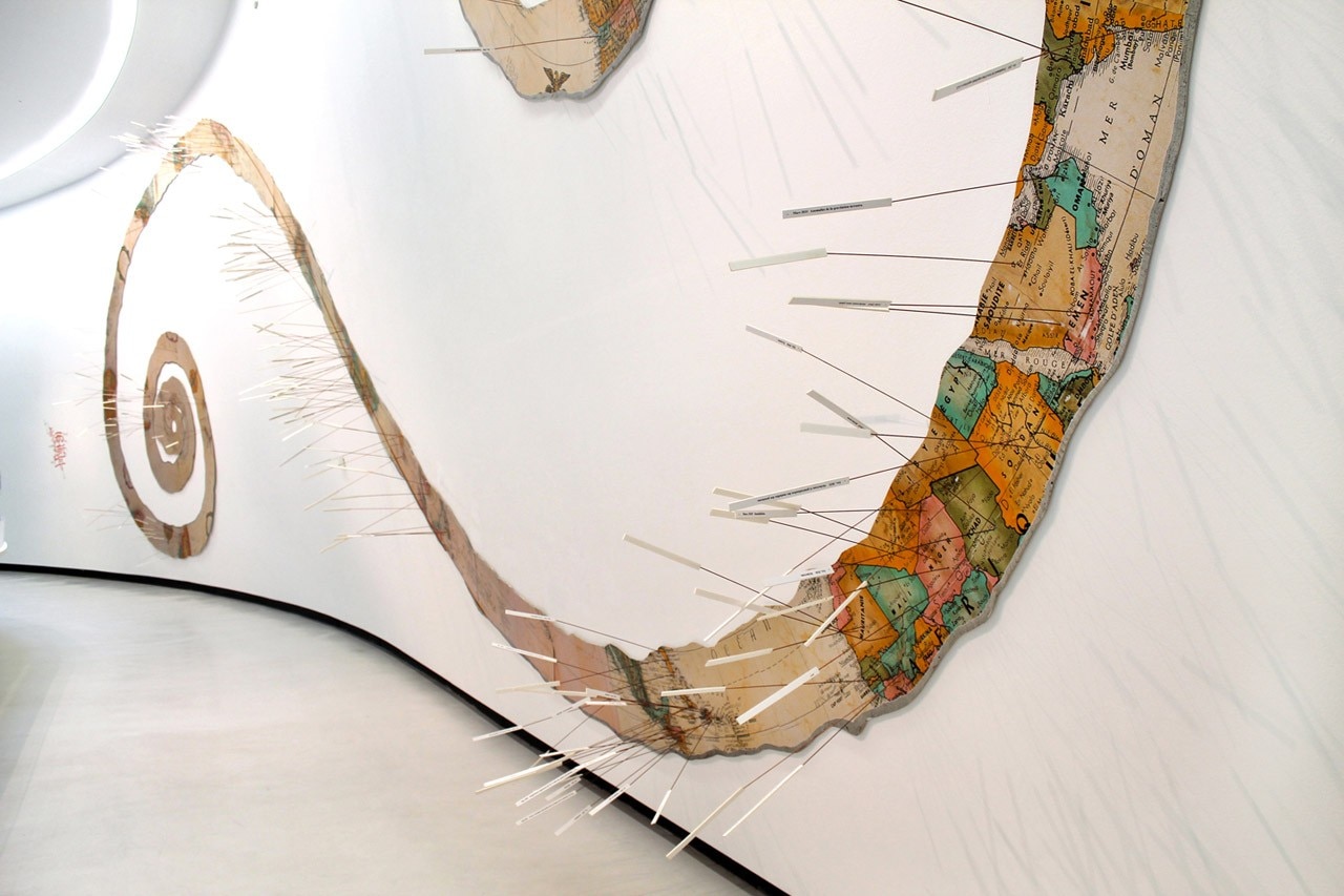 The title of the exhibition “Bâton–Serpent”, chosen by the artist, recalls a verse from the Exodus 7:10 in the Bible (“Aaron cast down his rod before Pharaoh and his servants and it became a snake”), and emphasizes the deep sense of the project, an ironic reflection that is at the same time profoundly critical, and in some ways skeptical, concerning the relations and the tension that exists between different cultures and religions, between history and modernity, a critical look at the philosophical and geopolitical origin of the contemporary conflicts that are shaking the world.