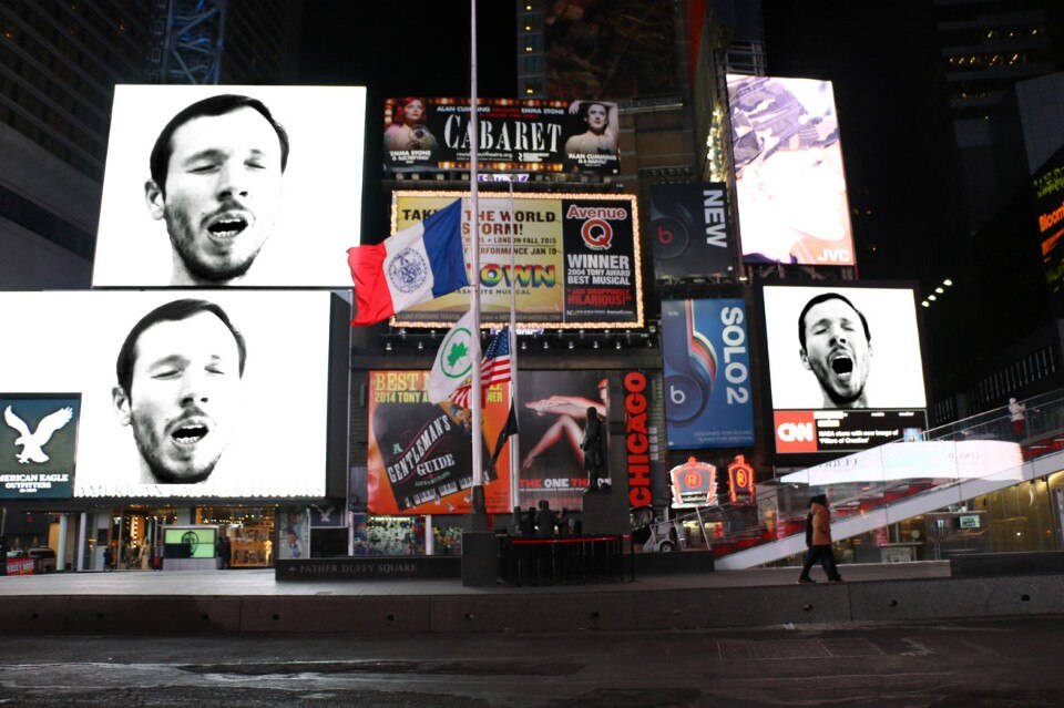 On Saturday, January 17, the final night of the COIL 2015 Festival, there will be a special gathering with the artist at 11:45pm on Duffy Square, inspiring a massive yawn-in.
