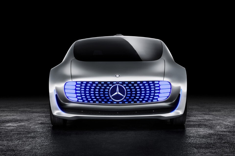 A range of different lighting functions can be provided through these LED fields. At the same time, the vehicle communicates and interacts with the outside world by means of the LED fields. These LED fields show for example, if the F 015 is driving autonomously (blue) or is controlled manually (white).