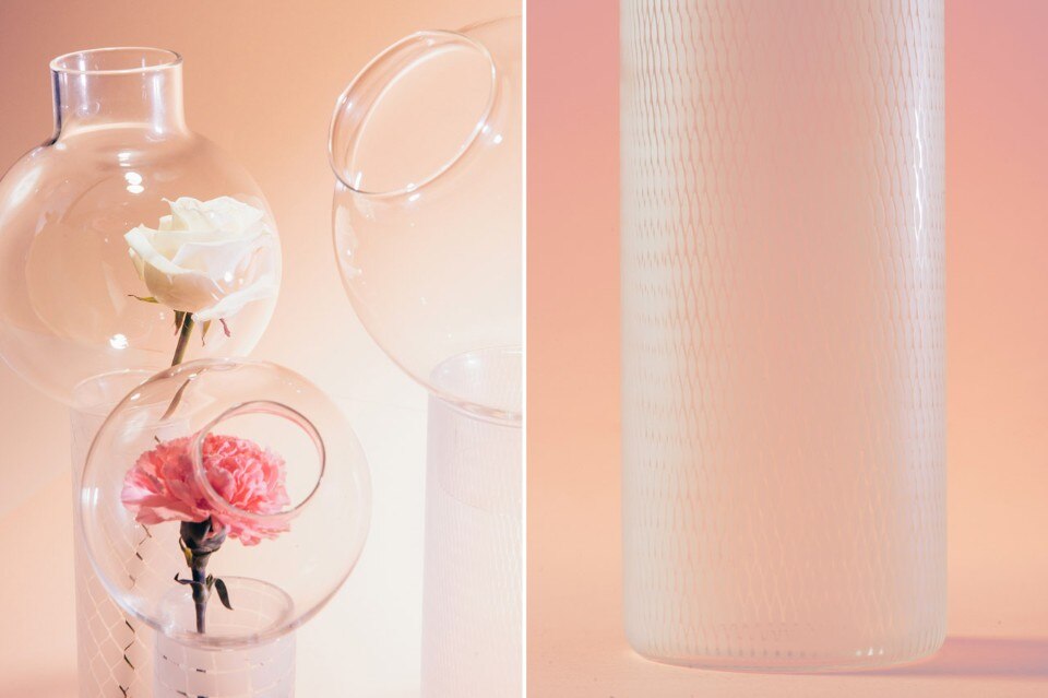 The glass ampoules are means to preserve and amplify the scent of the flower that lives its cycle in a protected atmosphere. The collection consists of a set of tools to smell flowers or aromatic essences.