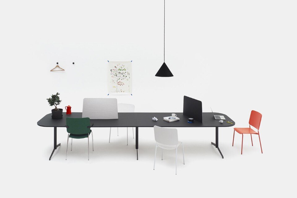 The fiber are pressed in big moulds to obtain the layers of felt that surrounds the light internal structure of aluminium tubes and wood slates. Everything is then heated up and then cooled down. This particular manufacturing process allows to industrialize the product and also turn it into a proper product.