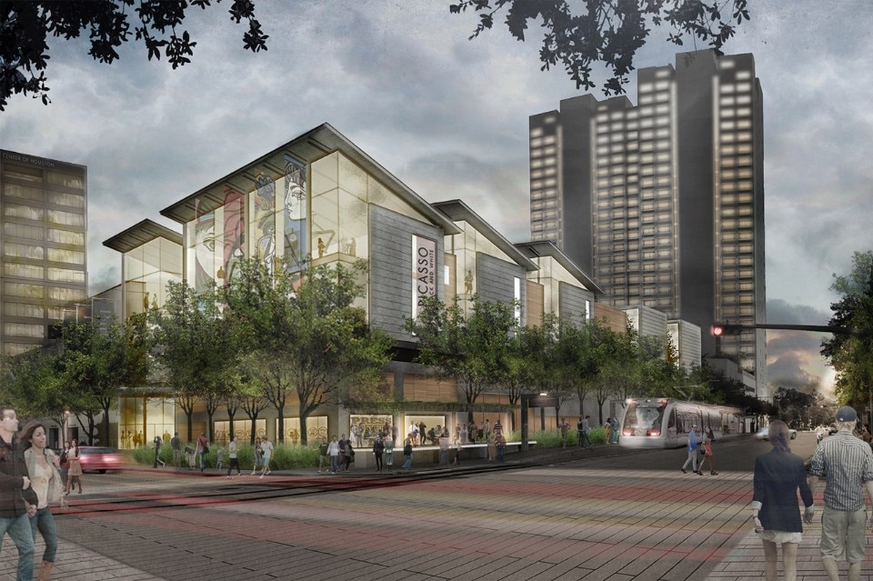 View of the Glassell School of Art facade and Brown Foundation, Inc., Plaza.
