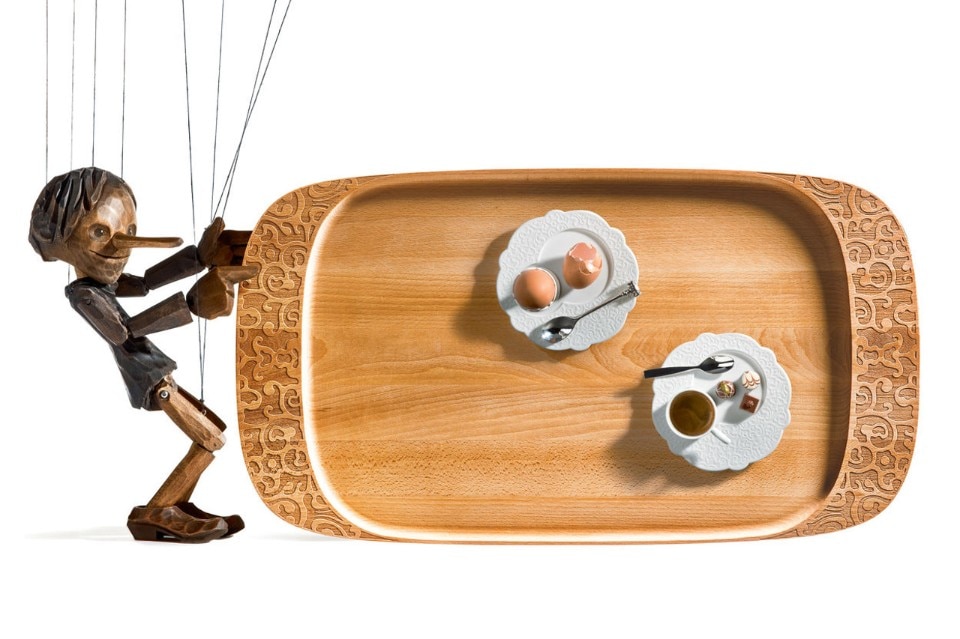 Meanwhile, the elements that make up the Dressed in wood collection are made from beech wood: a breakfast board, a serving board, two trays, a cheese board, a cake stand, a lid and a centrepiece. For the production of the Dressed in wood collection the company put its trust in the skills of the craftsmen of the nearby Valle Strona, highlighting the ancient local wood processing tradition.