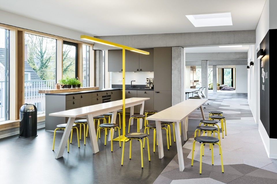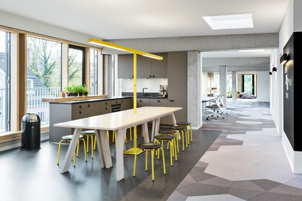 The brief was to design a working environment for the fast-growing company with open space balanced between areas for interactivity and for retreat. Two central conference rooms divide the floor plan and create niches which house working zones.