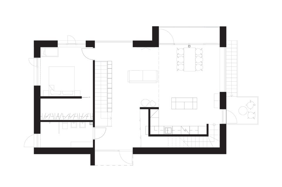 Kjellgren Kaminsky Architecture, Villa Bondö, Gravsjön, Mölnlycke, Sweden. First floor plan