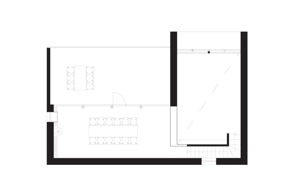Kjellgren Kaminsky Architecture, Villa Bondö, Gravsjön, Mölnlycke, Sweden. Basement floor plan