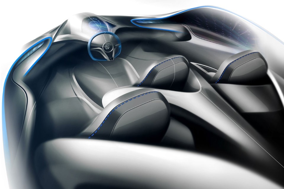 Using the electric engine, this rear-wheel drive vehicle could circulate freely in city centres, effectively contributing to reducing air pollution. Designed to deliver total safety, the car features a complete array of innovative passive and active safety devices. In electric mode, the car is completely silent and its arrival is perceived through front laser projection of messages and images on the road. As regards internal layout, the central driving position guarantees maximum visibility when driving, while the cockpit that “envelops” the two side passengers, covered by a teardrop windscreen, acts as a protective shield of the cabin.