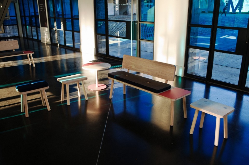 Using solid ash and steel panels they manufactured several pieces that sit together or separately in the main entrance of the Museum, collaborating with Elks of Ireland to create cushions that would compliment the material and colour palate of the collection. The collection has been growing since the first pieces were delivered and have found their way to other areas of the gallery.