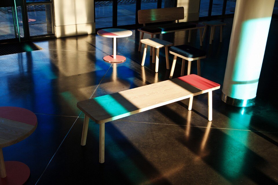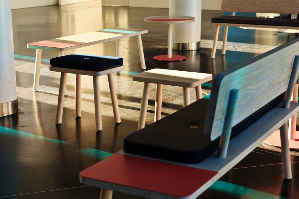 For the main entrance of The Irish Museum of Modern Art Designgoat developed a collection of furniture using solid ash, steel panels and cushions.