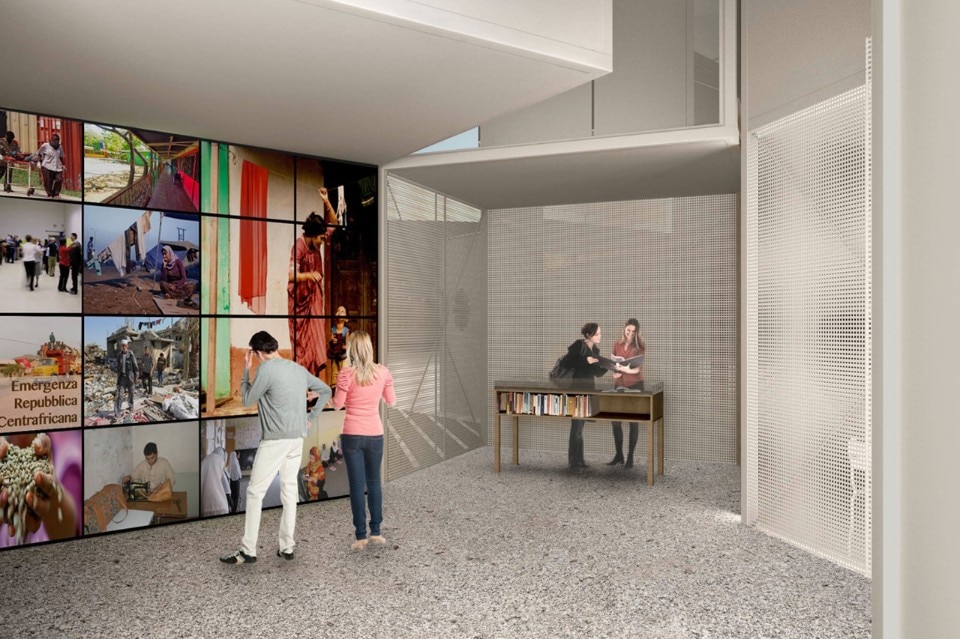 The plot occupied by Caritas presents a number of different features: a 200 sqm. outdoor paved area that greets visitors,a 150 sqm. covered area divided into different rooms, and a 550 sqm. green area. It is not just a place but 5 situations, 5 experiences that help visitors relate to the theme “divide to multiply” and the Caritas world.