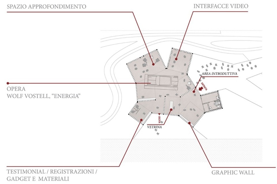 The itinerary will take visitors through the different rooms,each dedicated to a specific experience, and will exhibit, at its heart, a work of art: the installation Energy, made in1973 by German artist Wolf Vostell.