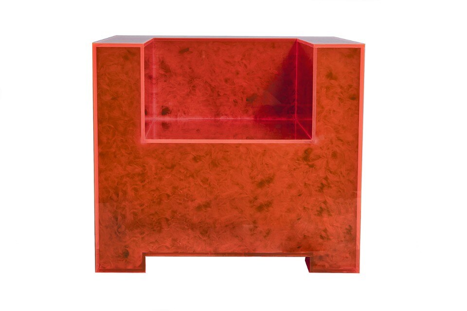 Decisive lines, crystal-like textures and soft soul: from this mix, Vanity Armchair is born. Plexiglass, translated in bright shades of neutral and fluo colours, protects the purity of a 100% natural goose feathers.