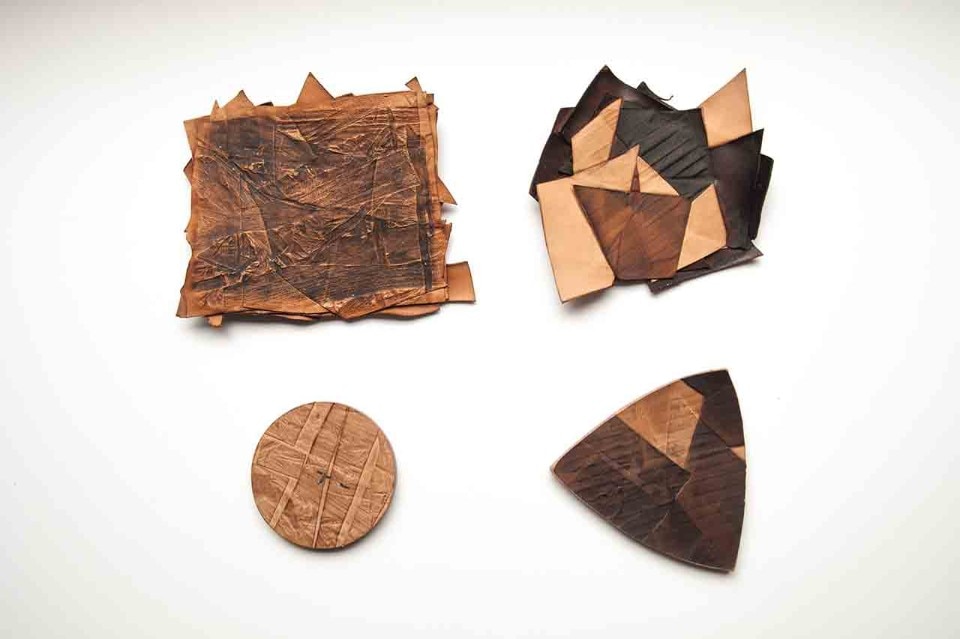 Most importantly, no bonding agents have to be used in order to create different leather laminates. We were also investigating old processes such as Cuire builli and a typical handcraft work used with leather and looking into new ways of employing them.