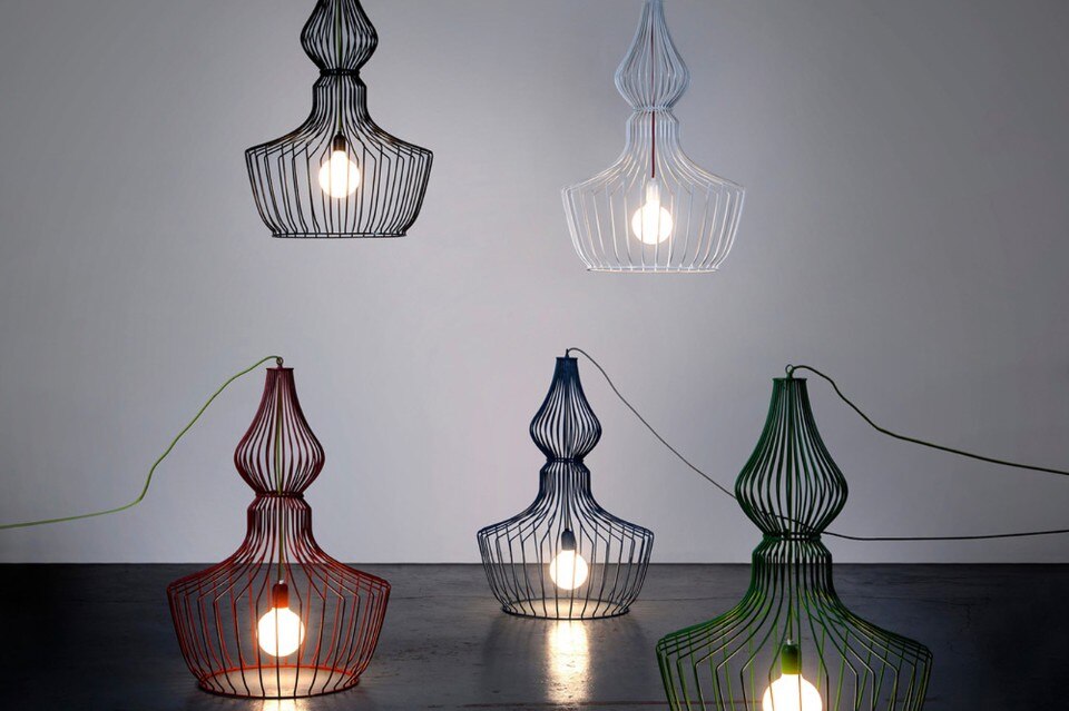 Tel Aviv-based practice Studio Beam designed a collection of lamps with a pure structural contour made of curved metal wire: a collection in which material-follows function-follows form.