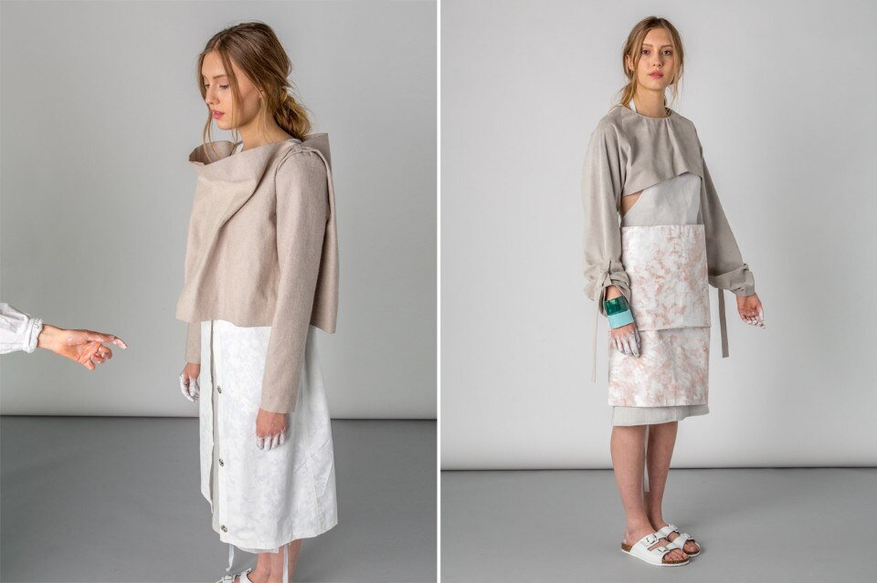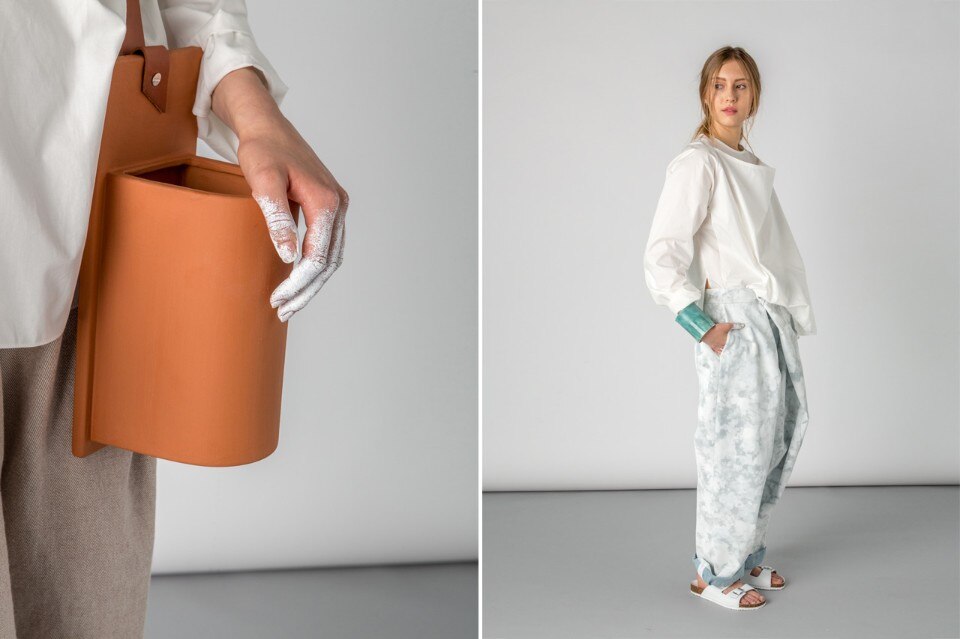 Saskia Roberts’ collection Potter. Painter. Poet. – based on the field of ceramics – draws inspiration from the working process of potters, and the transformation of the materials they use throughout this process, both in terms of form and texture.