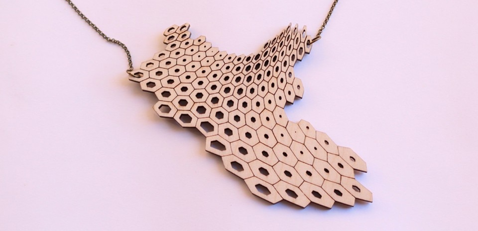 The endless geometries produced by bees are transformed into patterns in the jewelry collection designed by the SAO using parametric processes.