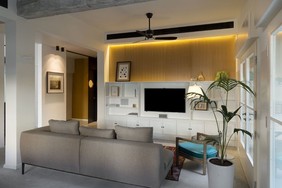 The International Style building is located in the center of the Tel Aviv’s White City and in the last few years has gone through extensive restorations of its exterior. The division of the interior of the apartment was customized according to the occupant’s needs, a business man who divides his life between cities.