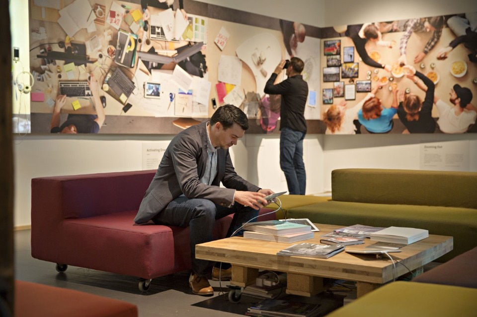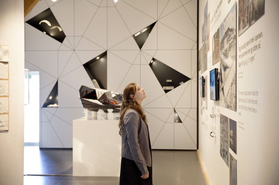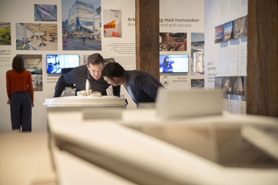 The core of the exhibition is a sensory workshop where visitors can touch, smell, see and hear how the many projects develop from concept to concrete work. In photos and films, visitors are met by the Snøhettas who guide, involve and explain.