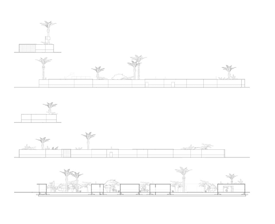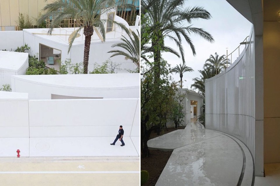 The pavilion is built out of white prefabricated concrete panels and is conceived to be moved to Bahrain at the end of the Expo in order to serve as a botanical garden that will reconnect the local and international audiences in Bahrain with the often overlooked agricultural heritage of the Islands.