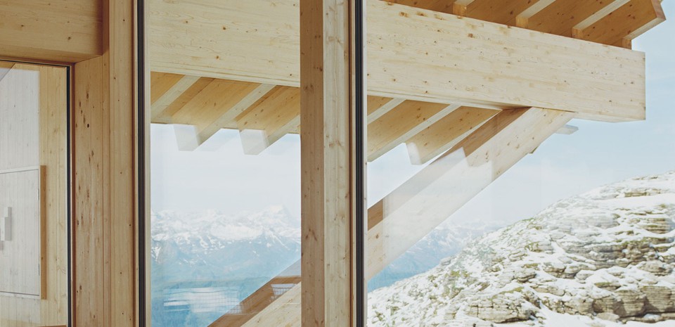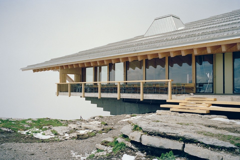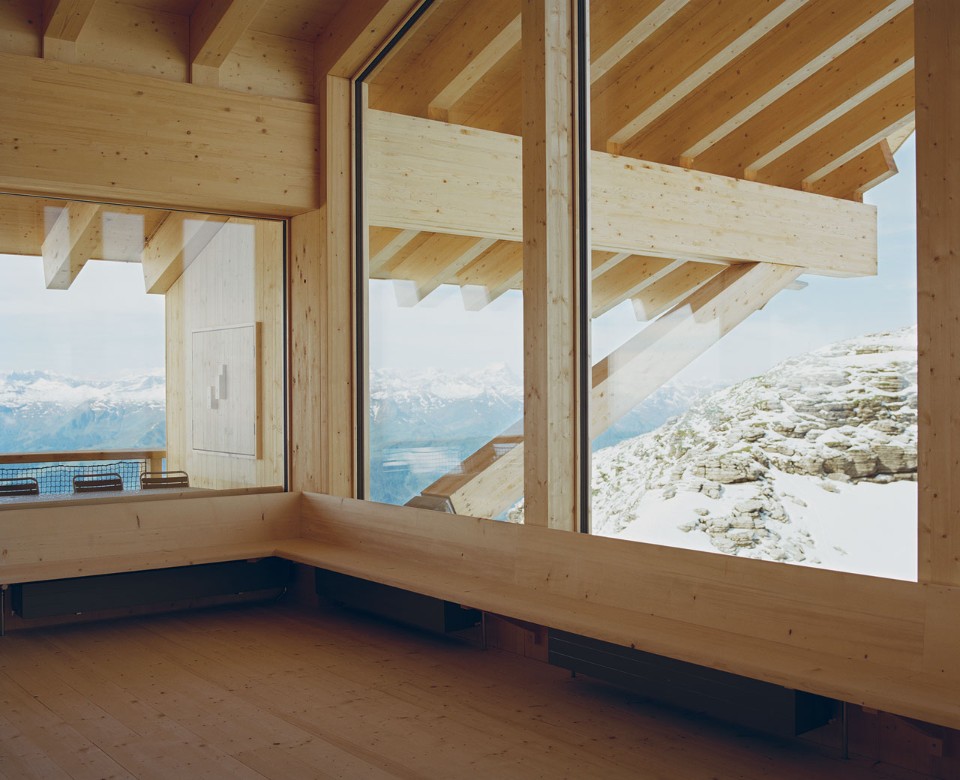 The new station is constructed in solid wood on a concrete foundation. It was prefabricated by local craftspeople in the valley and assembled on top of the mountain in the course of a summer. The interior was completed the following winter. We decided to use wood because we wanted to echo local tradition.