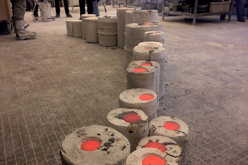 Objects made with a 3D-printer are ideal to use as a model for the casting process. The 3D-prints can fairly contemplate the lost-wax-casting method. The designers mainly used the common printer material ABS (Acrylonitrile butadiene styrene) as it’s made out of crude oil. ABS easily burns out without remnants when preparing the molds for casting in the oven. Objects made out of PLA (Polylactic acid) are also suitable but have a weaker performance with thinner models.