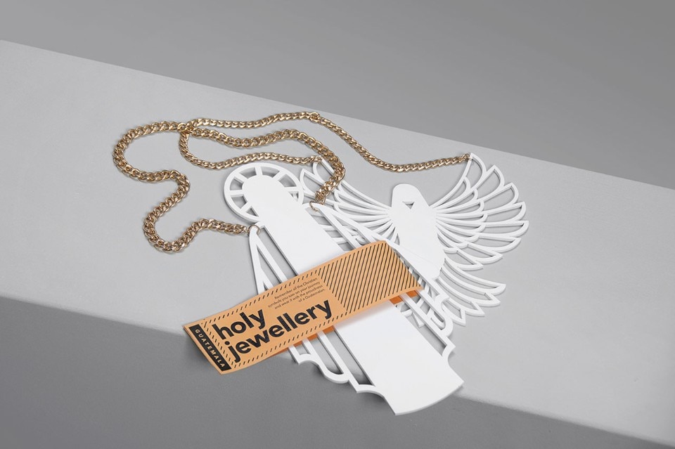 A Favela Wallpaper reminds the traveler on the impressive view of the ghetto of the poorest by bringing it into his home. The Corruption Glove is designed to remember the traveler with an extra irony portion how necessary corruption can be to accomplish ordinary errands in Guatemala and can be used as a little helper. By wearing the huge laser-cut Holy Jewellery, tourists can take part of the proud christian mentality of the Guatemalans home and by sending one of the Safety Cards they can let their beloved at home know that they are safe behind walls, fences and security men in the place with one of the world wide highest crime rates.