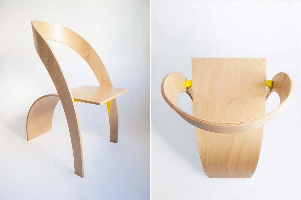 Bucharest design studio Kaptura de Aer proposes a plywood chair which shape brings up the idea of interplay thanks to its flowing form.