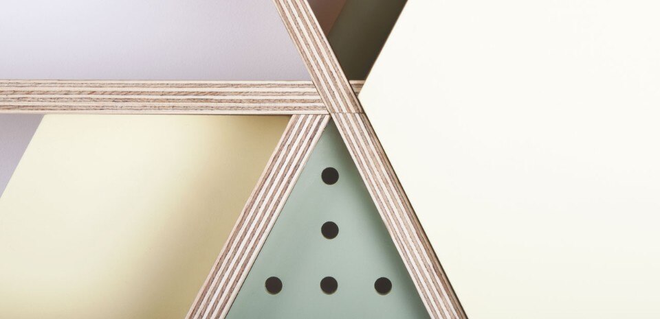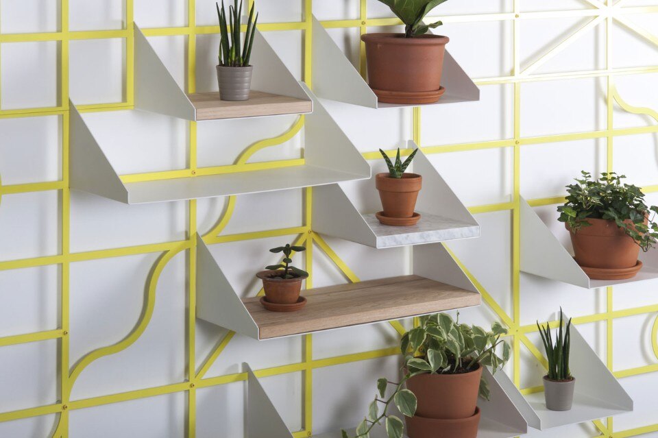 Other mirrors are located on the modular system on the wall, which plays both functional and decorative role.
