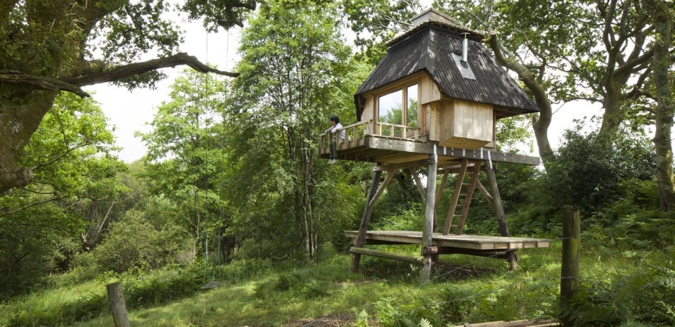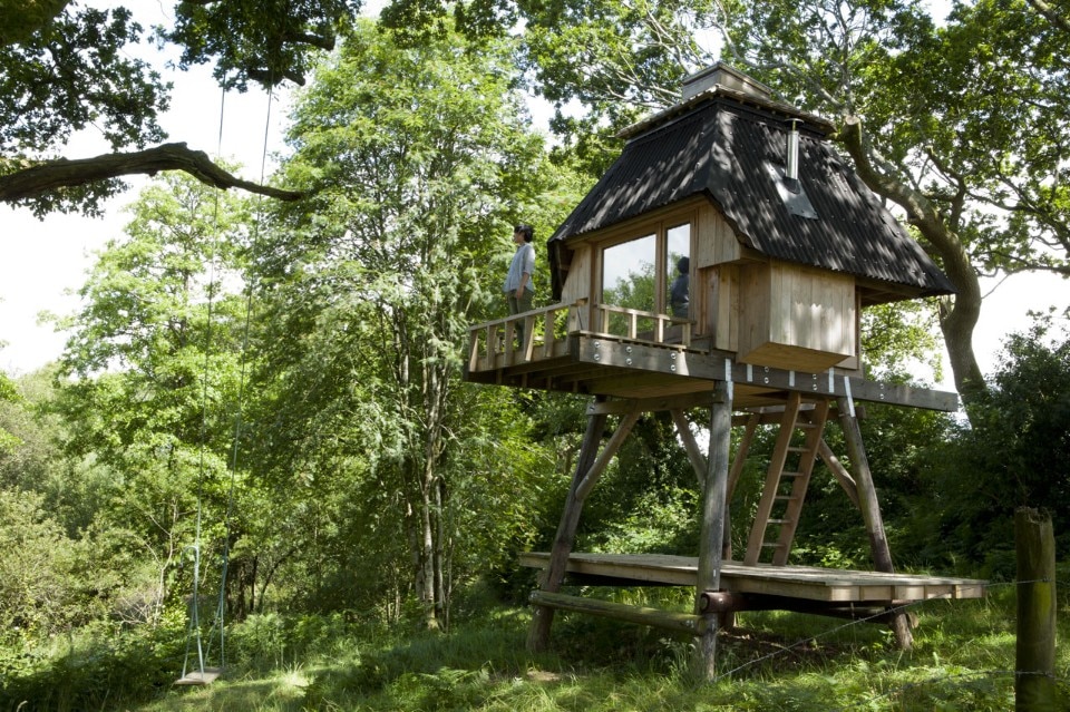 The building materials include, cork as insulation and exposed wall cladding locally sourced Western Red Cedar cladding, Douglas fir primary structure and reclaimed glazing and telegraph poles as the base structure.